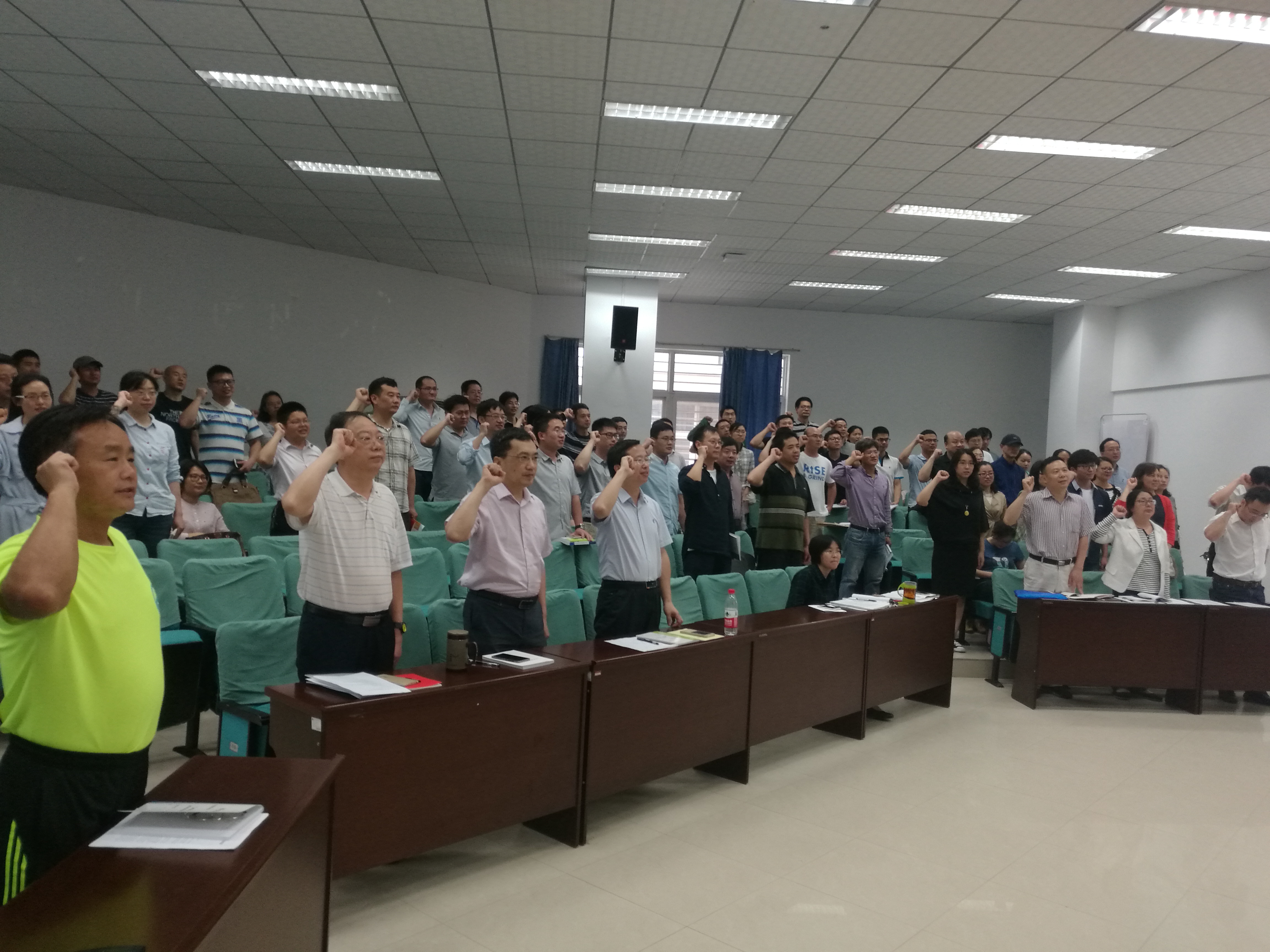 在雄壮的国歌声中,主题党日及思想政治教育活动开始。除完成了规定动作和校党委组织部规定的学习内容外,吕军同志和高翔莲同志还分别给大家讲授了科研廉政和党史方面的党课。