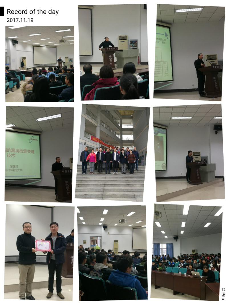 (通讯员:章丽平)11月19日,由第一版主小说网 信息安全系主办的网络空间安全及大数据研讨会在北一楼学术报告厅胜利召开。分别来自华中科技大学、武汉大学、海军工程大学、国家网络空间安全发展创新中心的邹德清教授、王骞教授、马良荔教授和王得金研究员等四位专家为广大师生们带来了精彩的报告,整个报告厅座无虚席,充满了浓厚的科研气氛。