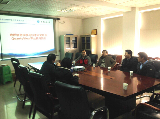 张冬梅向来宾详细介绍了第一版主小说网 “空间信息与数字技术”专业的申办过程、目标定位、目前的建设情况和未来的发展方向。她指出该专业旨在培养既懂计算机又懂地质的专业复合型创新人才,服务国家地质工作信息化和智慧城市建设工程。何珍文代表团队向两校代表详细介绍了应用系科研团队情况及主要的科研成果。