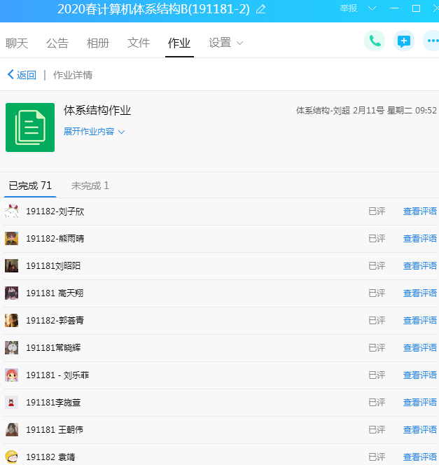在做好线上教学规范管理的同时,刘超老师活用群作业功能,根据视频内容和课程进展,布置视频学习内容以及课堂作业,巩固线上教学效果;