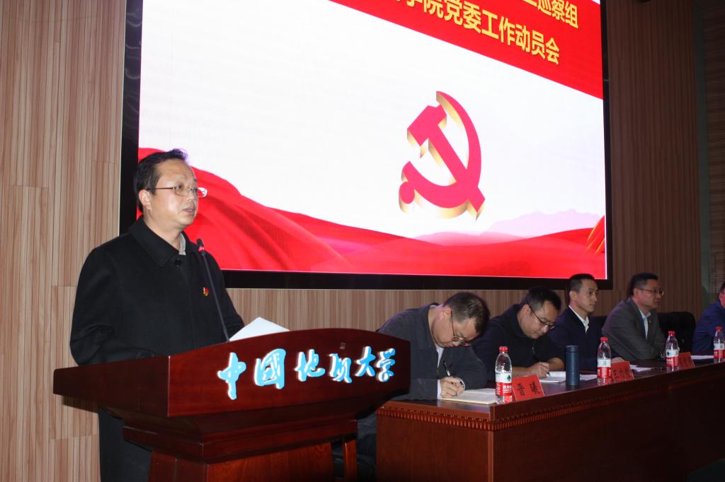 副校长刘杰同志讲话,并提三点工作要求。一是提高政治站位,深化思想认识,高度重视巡察工作;二是坚持问题导向,对标“四个落实”,扎实推进巡察工作;三是强化责任担当,狠抓整改落实,圆满完成巡察工作。他强调,要本着对学校事业认真负责的态度,站在推动“建设地球科学领域国际知名研究型大学”的高度,进一步增强“四个意识”、坚定“四个自信”、做到“两个维护”,进一步强化坚持党对学校工作全面领导的政治自觉,坚持党要管党、全面从严治党,对标对表“四个落实”,圆满完成学校党委赋予的巡察工作任务,以高质量巡察推动高质量发展。