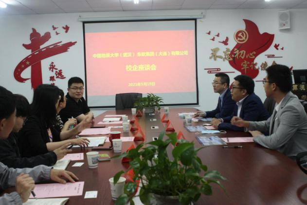 党委副书记傅苑、就业辅导员李欢欢、王太茂、地信学院就业辅导员李天琪作为校方代表,同企业代表磋商校企合作各项事宜。