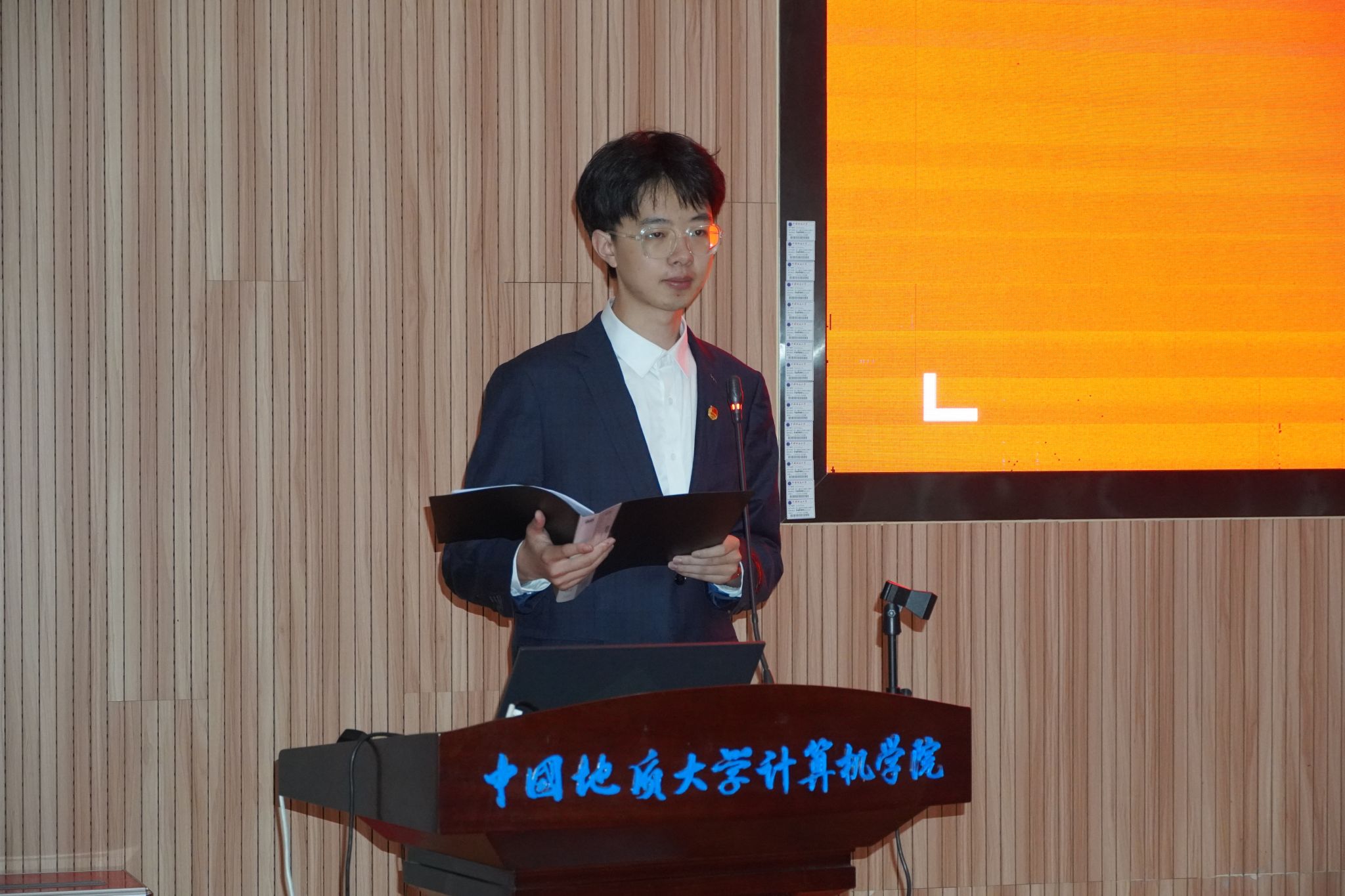 2023届计算机学生会主席团成员董帅宣读大会选举工作人员名单及选举办法。