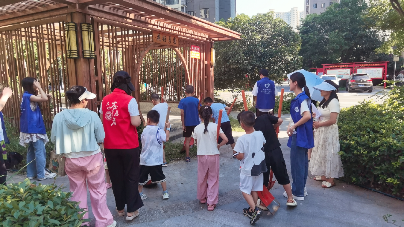 小朋友们昂扬的热情就如七月的阳光,纯粹而炙热个个争当社区绿化的小小美容师。