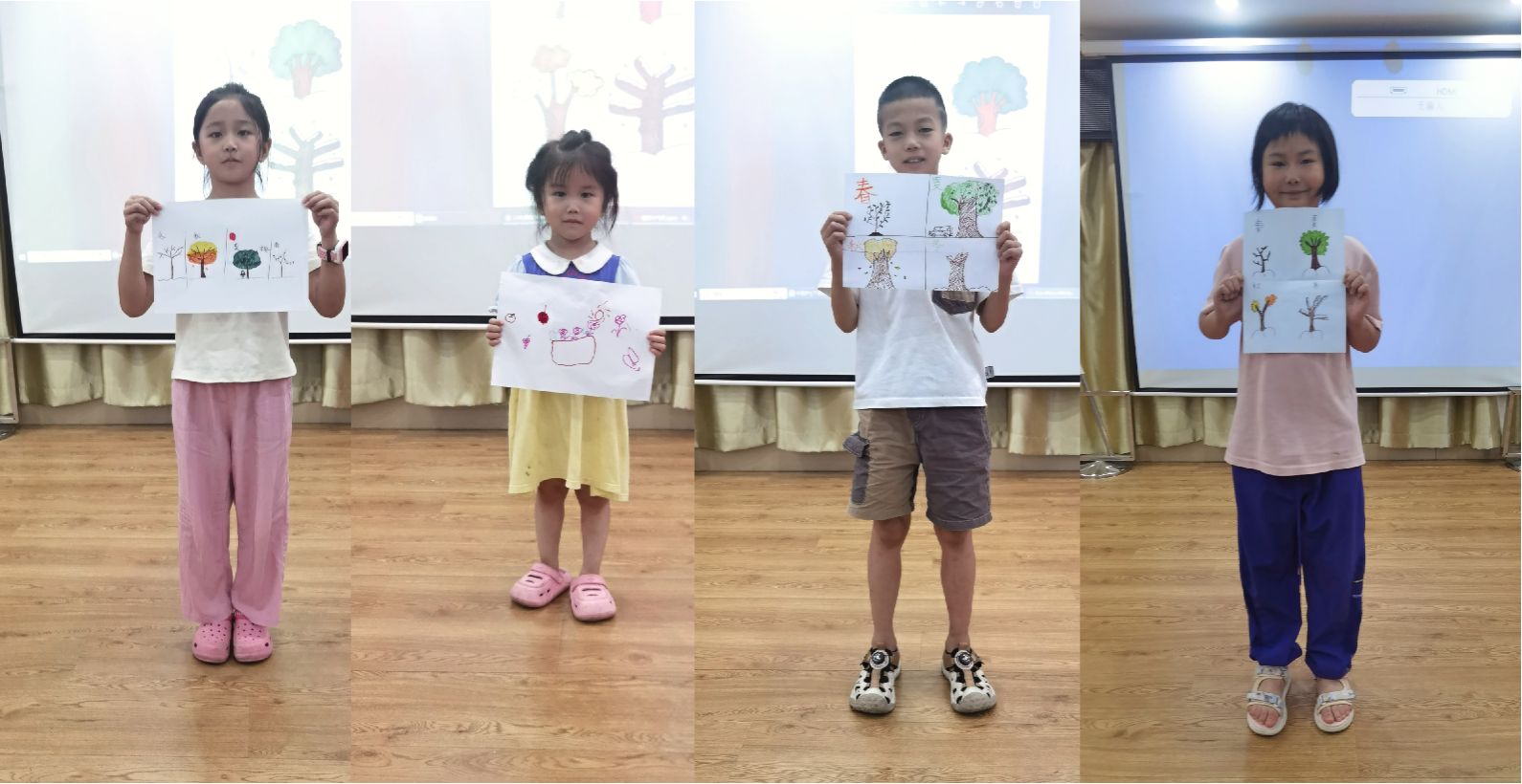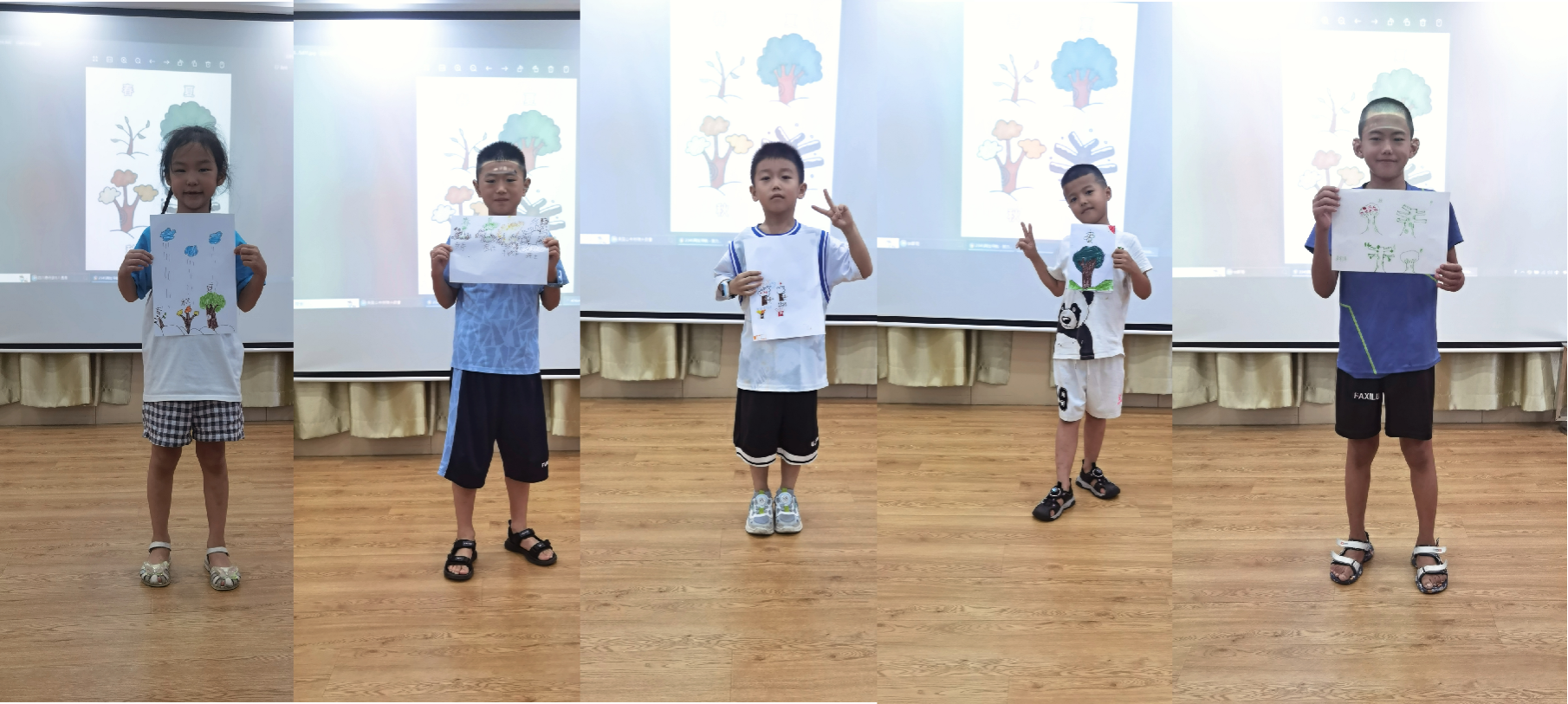 此外,为了让小朋友们更深入触摸植物的奥秘,团队成员运用看图猜意”和“绘出一年四季”两个环节,既能提升小朋友们的论述能力和逻辑思维,也让我们更直观地看到小朋友们心中植物一年四季的更迭变化真正触摸到小朋友们的小小天地。