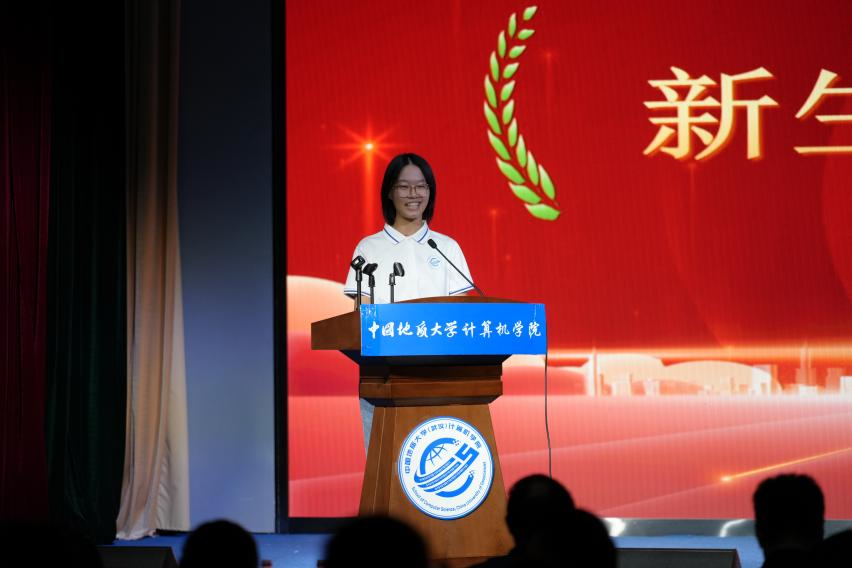2024级陈婧菲作为新生代表发言。她表示,踏入这片充满希望的校园,标志着梦想启航,是通向未来的崭新篇章。她分享了自己对未来四年校园生活的规划,表示会与同学们一起怀揣远大志向,保持高度自律、勇敢尝试、不断培养自主学习的能力。她希望大家在这段宝贵的时光中勇敢追梦,携手探索知识的海洋,共同成长为堪当时代重任的栋梁之材。