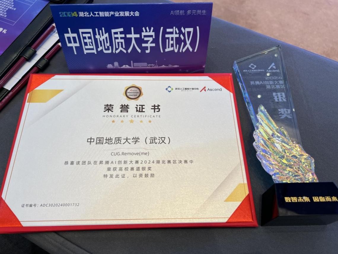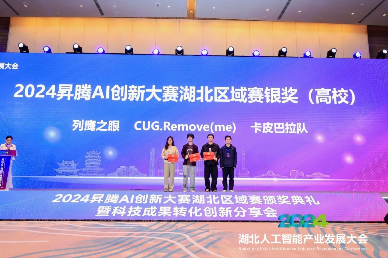 10月24日,我院软件工程专业的刘铭权等六人组成的CUG.Remove(me)队,在指导老师李程俊和张东方的悉心指导下,凭借其创新项目《空间高性能计算单元在轨智能目标检测》,荣获华为2024昇腾AI创新大赛湖北区域赛银奖,总评第三。
