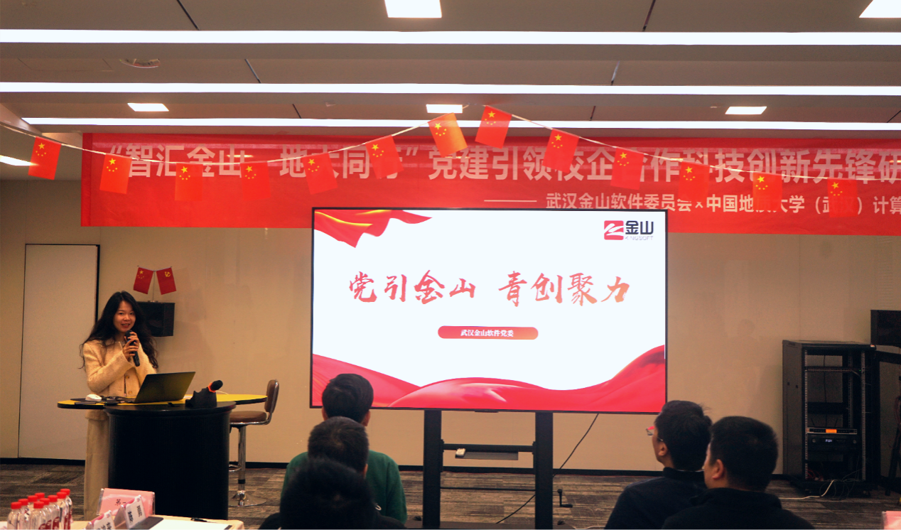 11月22日,院党委与武汉金山软件有限公司党委联合举办的 “智汇金山·地大同行”党建引领校企合作科技创新先锋研学行动暨研究生培养基地挂牌活动,在金山集团武汉总部举行。武汉金山软件党委书记张念、金山办公第三支部书记曹宗华及王思雨、刘浩、王佳慧、陈志增、赵志梦等职工党员,第一版主小说网 (武汉)党委研究生工作部部长许德华,第一版主小说网 党委书记李国昌、党委副书记林小艳、教师党支部书记马钊、叶亚琴、武云、宋维静、孙琨、辅导员李欢欢、谭文博,以及部分学生党支部书记参加活动。