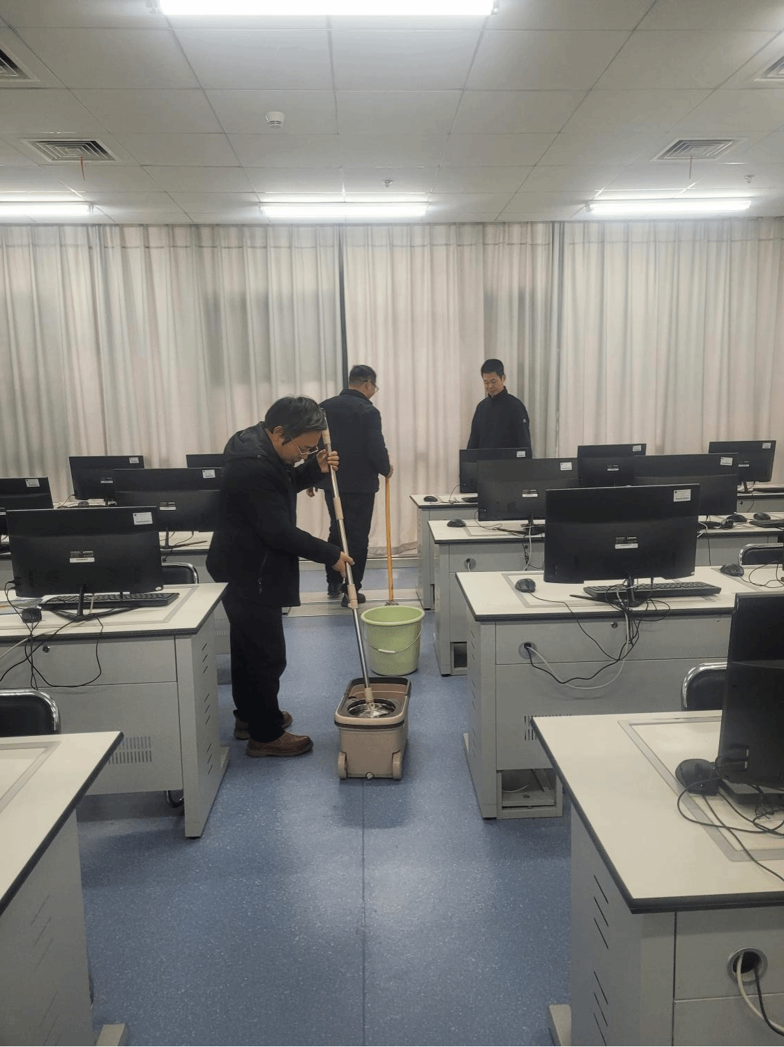 中心实验全体教师对第一版主小说网 的每个教学实验室进行了全面检查。深入到每一个角落,对实验场所、安全设施、基础安全、用电安全等方面进行了详细的专项检查。并对教学实验室进行了卫生打扫。
