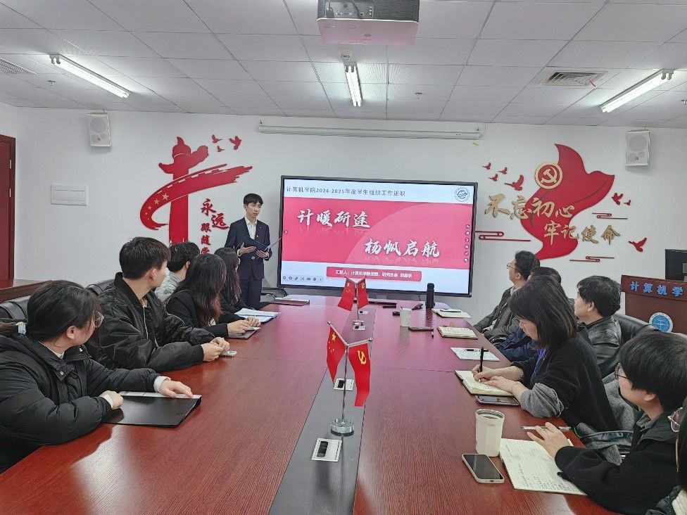 学院团委副书记郭嘉乐以“护航研学”为核心,围绕思想引领、科技创新、服务保障和文化育人四大方面,对研究生团学组织开展的“师说芯语”导学沙龙、信息前沿未来论坛、“最美研学空间”建设、“计科杯”和趣味运动会等特色活动进行汇报。未来将继续以全心全意服务同学为宗旨,打造更加卓越的成长平台。