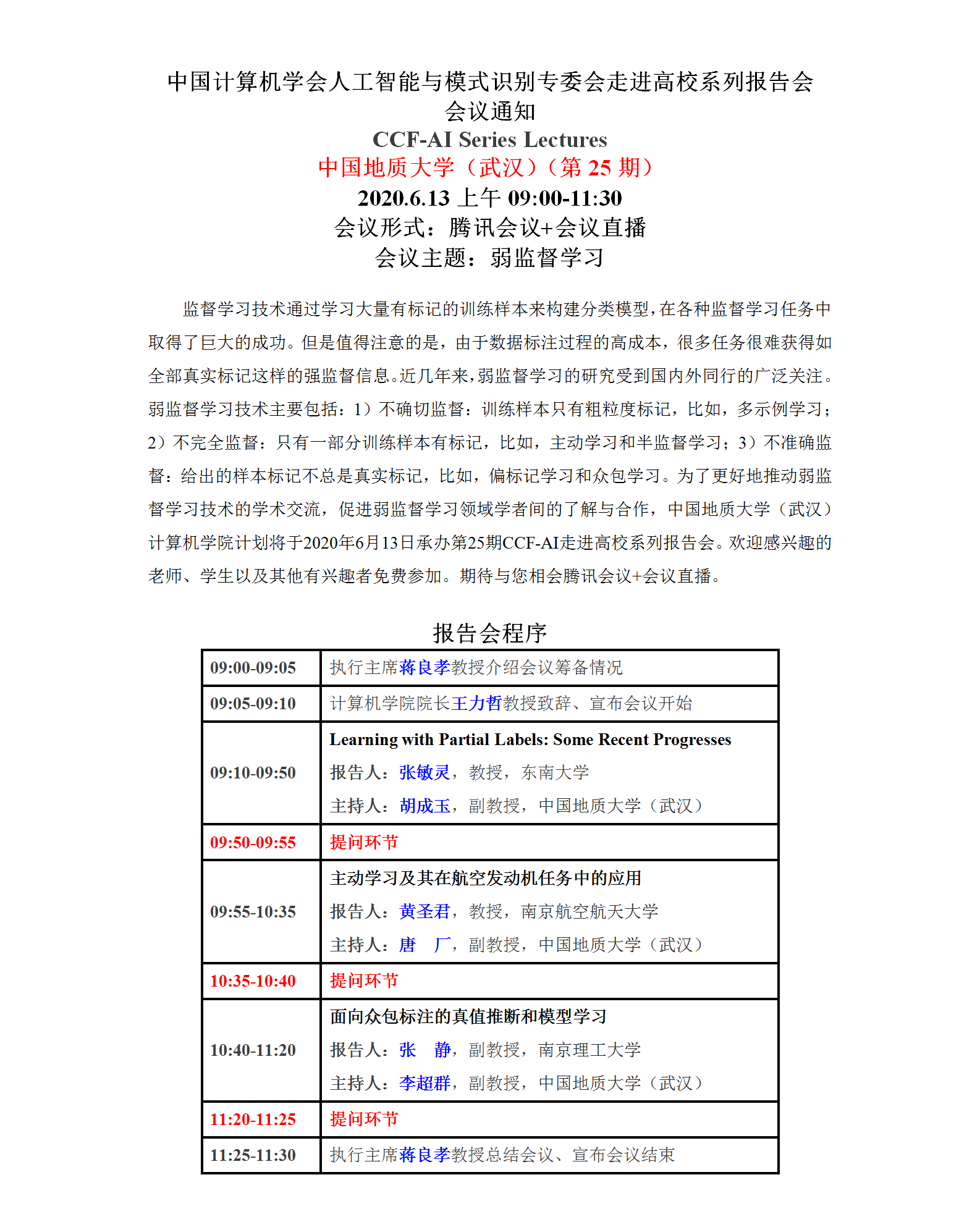 学术会议:中国计算机学会人工智能与模式识别专委会走进高校系列报告会