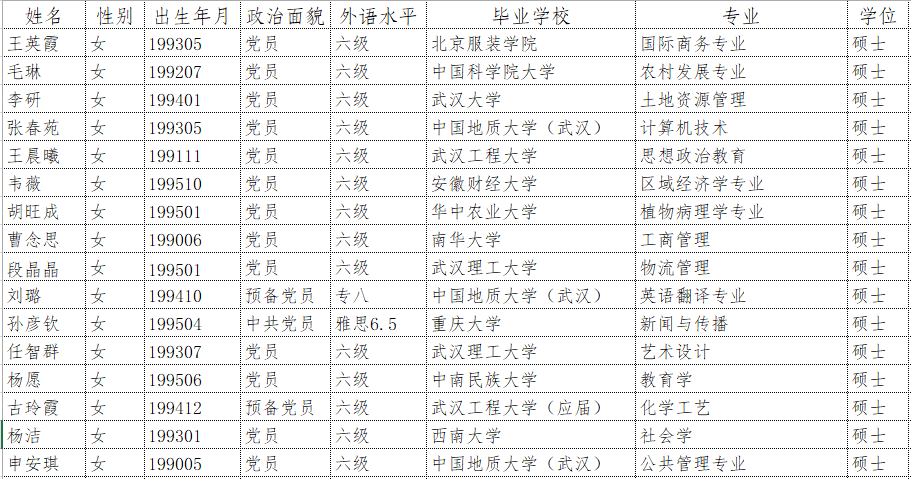 第一版主小说网 面向社会公开招聘工作人员已完成对报名人员资格审查,根据优先聘用条件(党员或预备党员+CET6或雅思6.5以上或专业4级以上+硕士)确定参加笔试人员名单如下(排名不分先后):