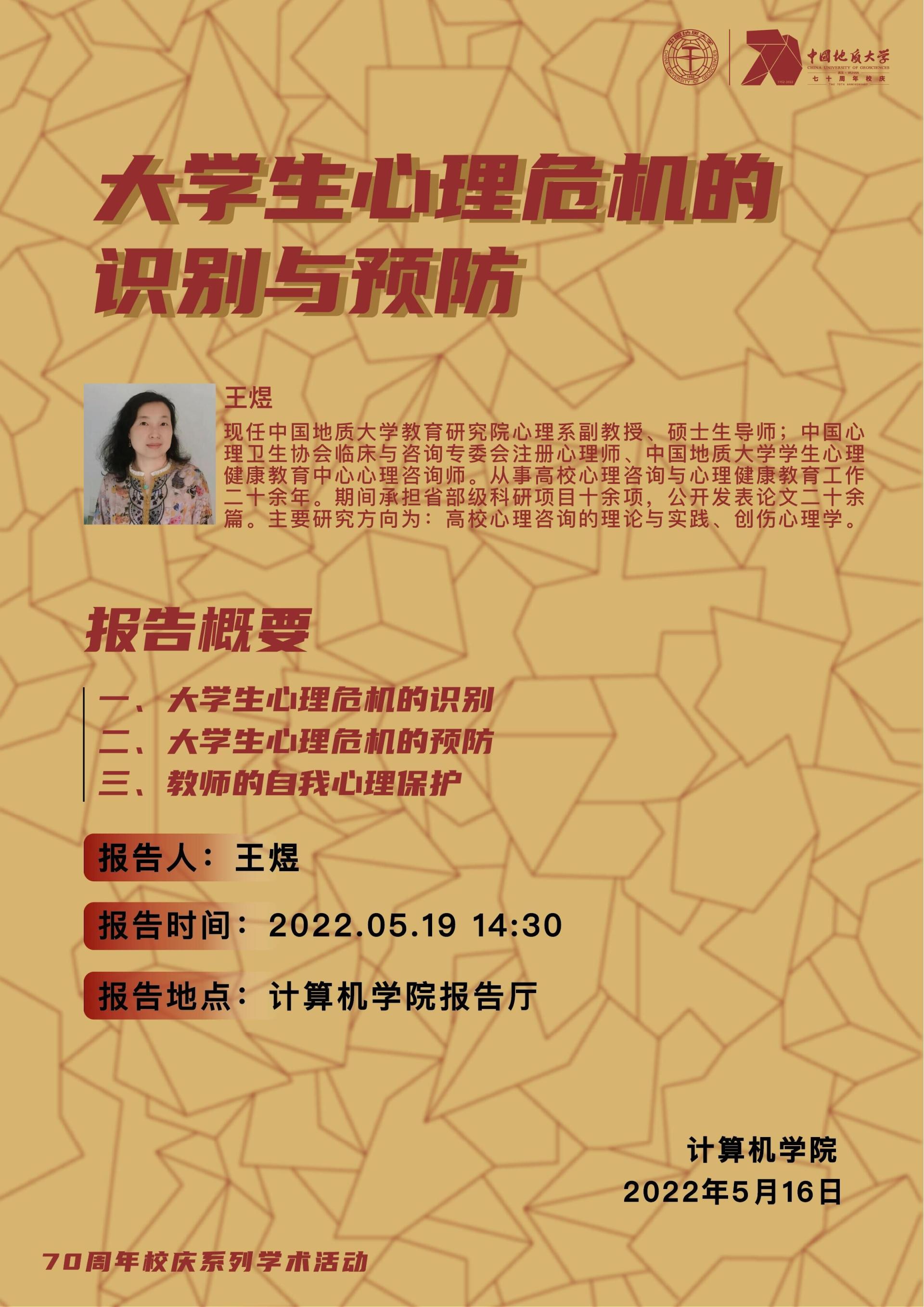 学术讲座——第一版主小说网 教育研究院心理系副教授王煜:大学生心理危机的识别与预防