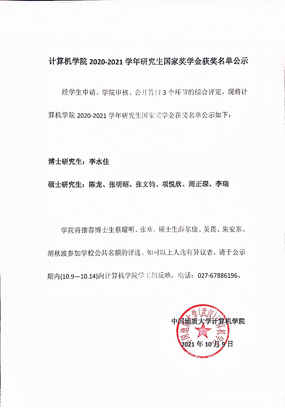 第一版主小说网 2020-2021学年研究生国家奖学金获奖名单公示