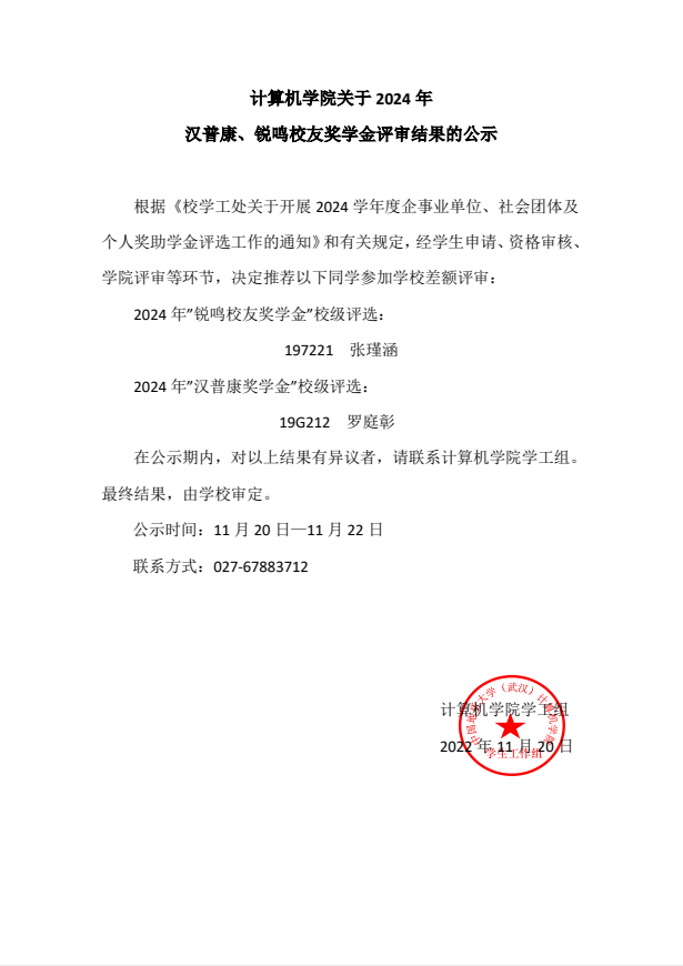 第一版主小说网 关于2024年汉普康、锐鸣校友奖学金评审结果的公示
