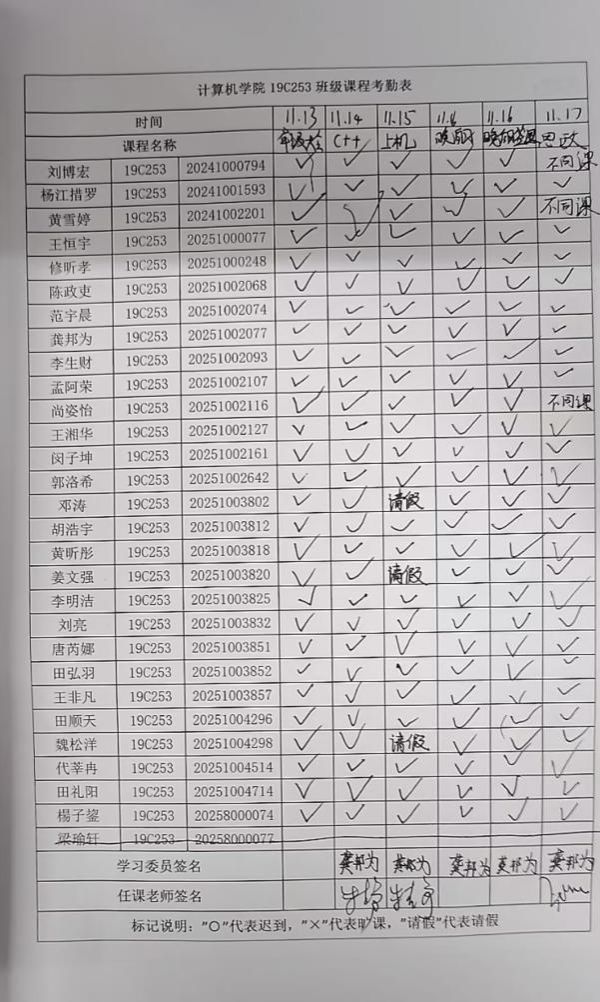 5.严抓课堂秩序,提升自习效能。推行学习委员每日课堂考勤制度,落实“前排就座”课堂规范,设立“学习互助小组”,同时构建教师与辅导员联动督查体系,强化课堂与自主晚自习秩序管理,营造 “比学赶超、互帮共进”的学习氛围。