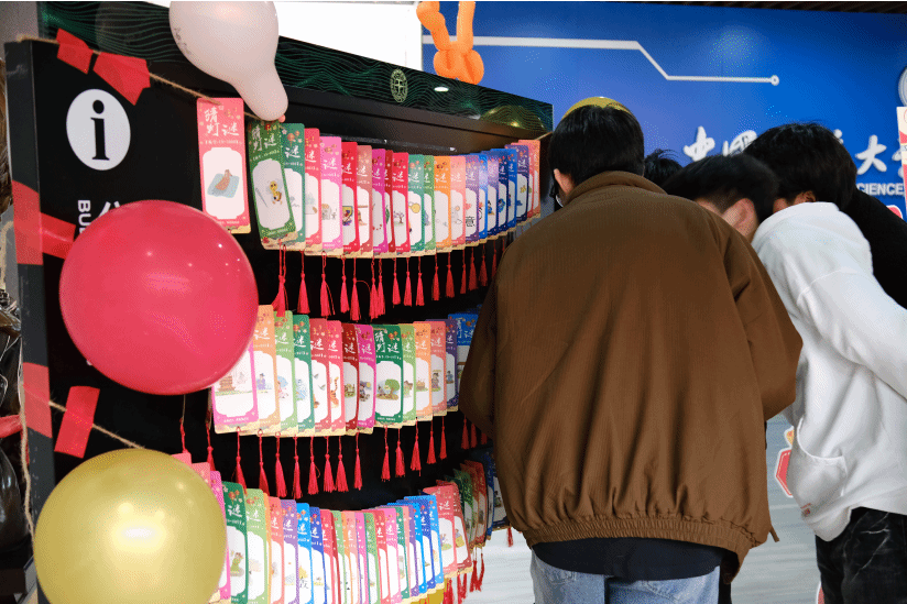 五彩斑斓的灯谜卡片挂满绳间,涵盖成语典故、诗词经典、历史常识与前沿科技等多元领域,每一道谜题都是一次知识与灵感的碰撞。师生们三五成群,或驻足沉思,或轻声探讨,时而因找到解题思路而眼前一亮,时而为解开难题而欢呼雀跃。破解谜题后兑换小礼品的瞬间,更是将成就感拉满,在欢乐互动中,大家既收获了知识的乐趣,也感受了中华传统文化的博大精深。