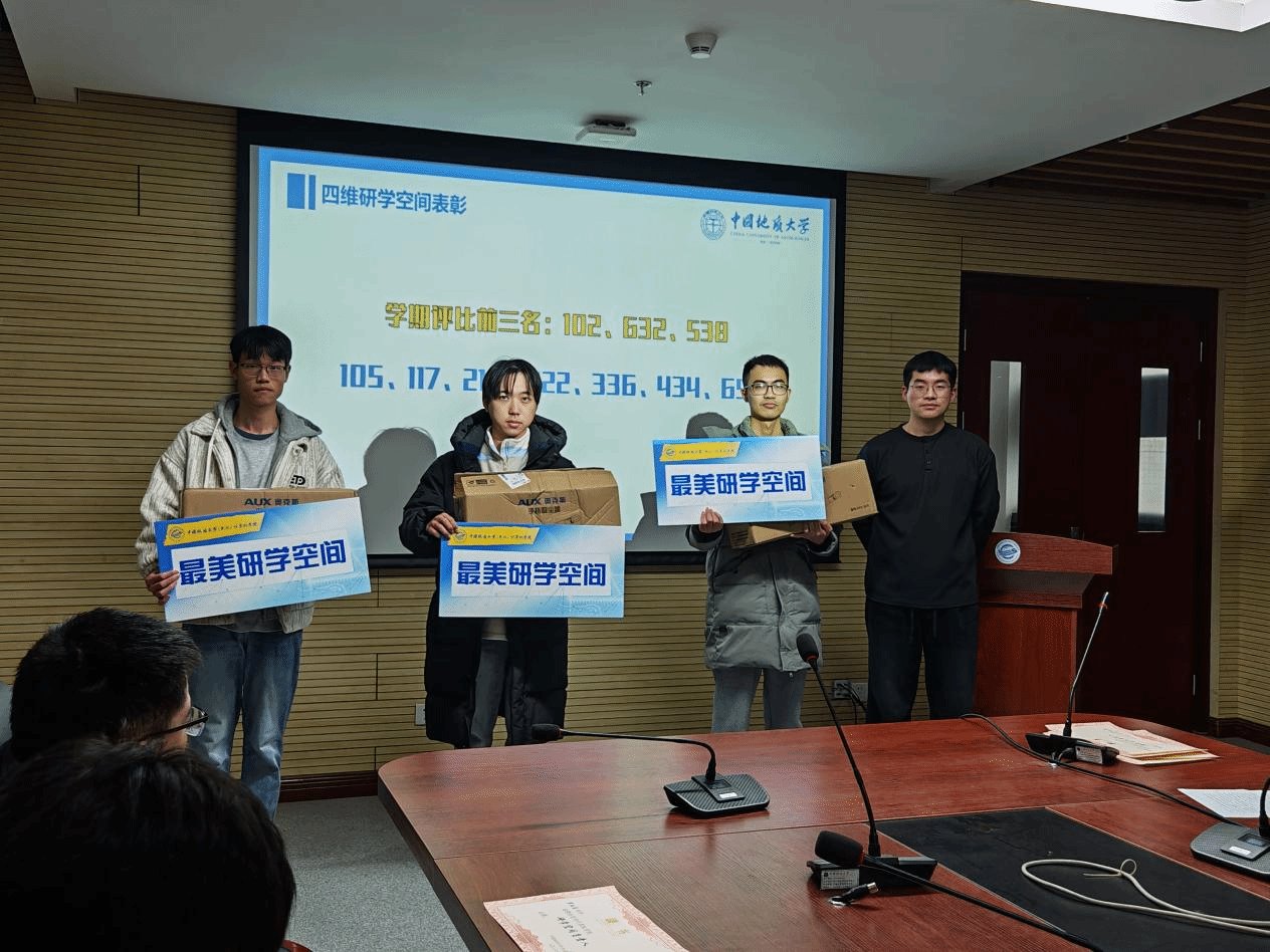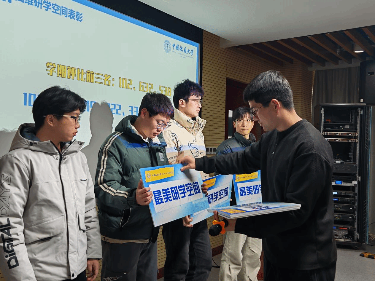 表彰环节是本次会议的重要亮点。经过严格评选,一批在“最美研学空间”评选及本学期卫生评比中表现突出的实验室脱颖而出。会议现场,丁老师为获奖实验室代表颁发荣誉证书和精美奖品。