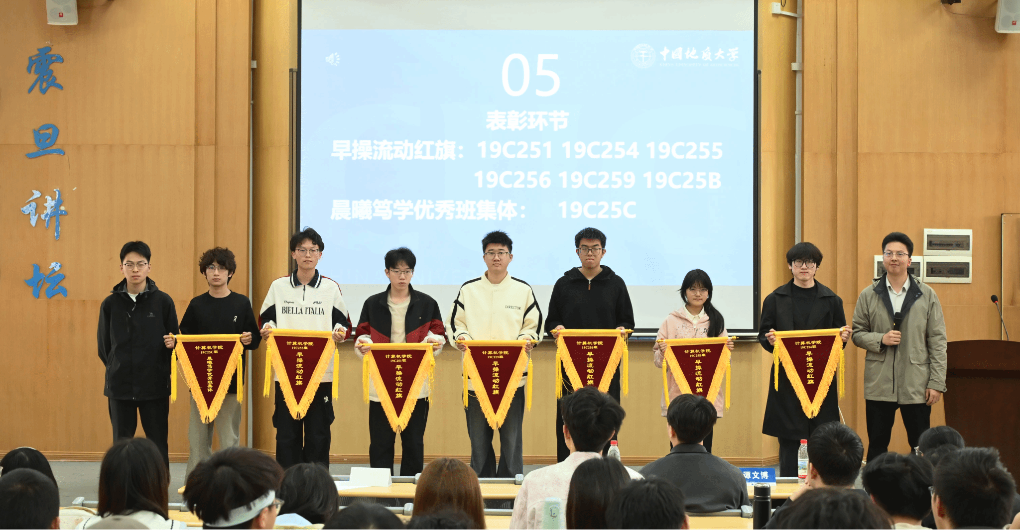大会进入表彰环节,对2025年早操流动红旗、“晨曦笃学”优秀班集体以及全国大学生职业规划大赛校赛获奖者进行表彰,以榜样力量引领广大学子争先奋进。
