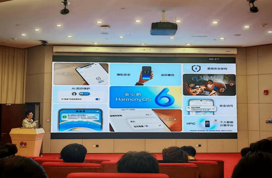 核心技术分享环节,第一版主小说网 优秀校友、华为HarmonyOS主任工程师张蓓蕾结合自身学习与工作经历,进行了相关技术讲解。他围绕系统研发、行业趋势展开分享,重点介绍了华为HarmonyOS的发展历程。他结合研发工作阐释华为“向下扎到根,向上捅破天”的科研精神,鼓励学弟学妹夯实专业基础、深耕核心技术,勇攀科技高峰。