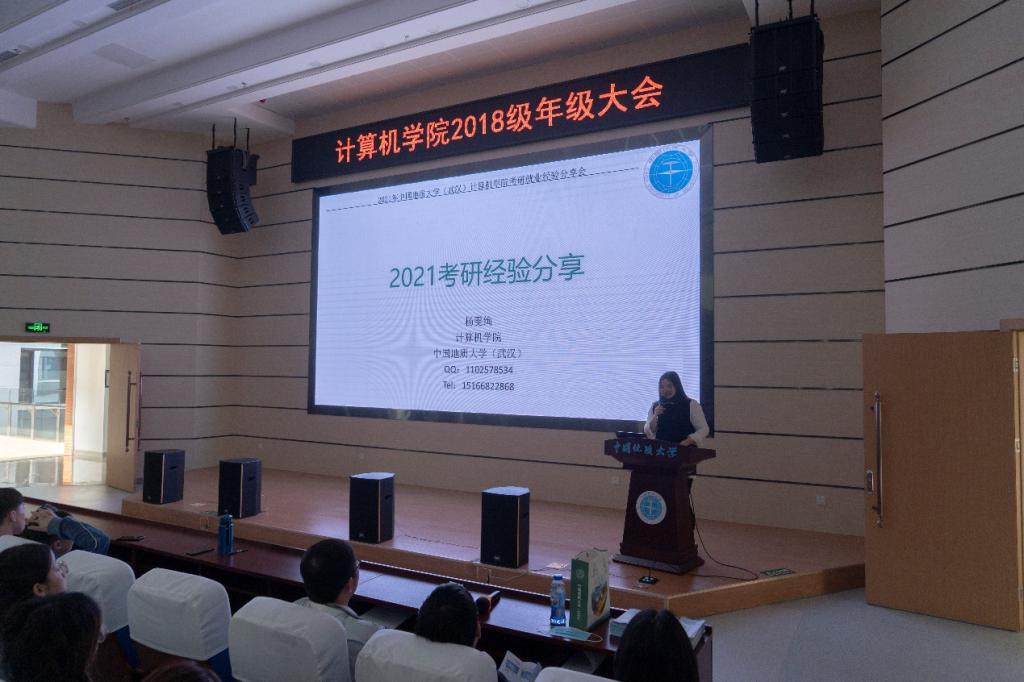 接着2017级的三位学长学姐为大家做考研就业指导分享。网工专业的杨雯绚从学硕的角度指导大家如何准备和应对考研,从准备考研的不同阶段提出建议;计科专业的郭兴从专硕角度分享了自己的经历和认识,谈到了学硕与专硕的区别,强调做好时间规划,考研就业也可以不冲突;计科学长杨周从就业角度分享自己的经验,他从做简历到投递简历再到笔试面试的就业过程详细为大家进行讲解,告诉同学们要认清自己究竟是否适合考研,考研与求职并不是对立存在的。