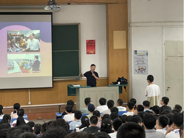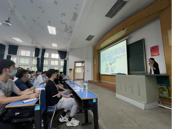 院党委副书记傅苑做题为《带你走进大学》的新生教育课,从学院介绍、大学学习的转变、就业与发展以及学业管理四个方面展开,介绍了学院如何助力学生多维度成长,总结了大学阶段学习的特点,为在座的各位新生打开了洞见未来的窗口。她强调,步入大学要为自己制定详细可行的学习目标,养成独立自主,多思善问的学习习惯,改变“到大学就轻松了”的错误想法。最后,她寄语全体新生,希望在座的各位能够成为积极向上,励志有为的新时代青年。