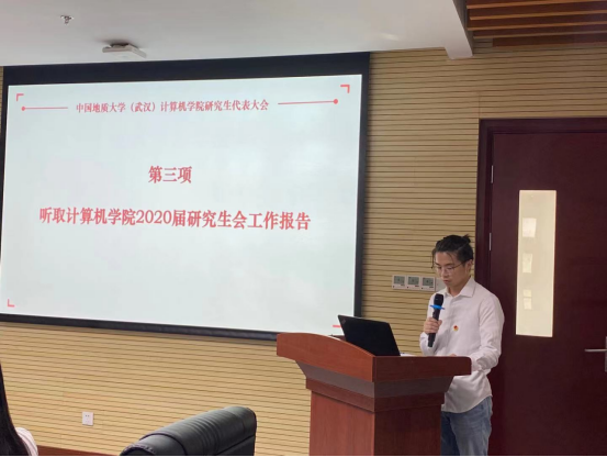 大会第二项,第一版主小说网 研究生会主席团成员代刚做2020届研究生会工作报告,报告以《不忘初心,砥砺前行》为题,总结回顾了过去一年研究生会在思想引领、科创研学、素质拓展等方面展开的工作和取得的成效。