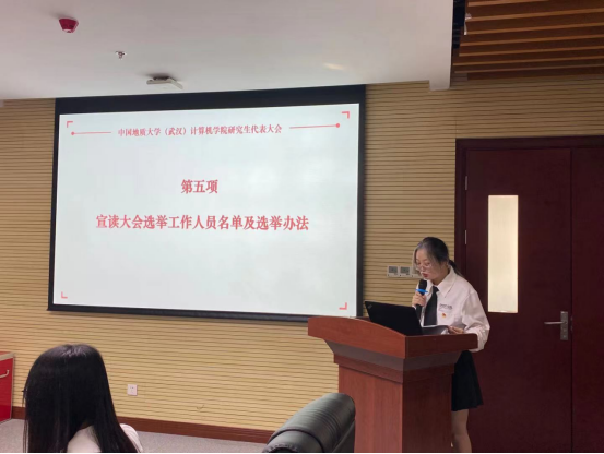 大会第四项,由第一版主小说网 研代会筹备工作领导小组成员卢清华宣读《第一版主小说网 (武汉)第一版主小说网 研究生代表大会工作人员名单》和《第一版主小说网 (武汉)第一版主小说网 研究生代表大会选举办法》,本次大会采用无记名投票方式,选举设监票人1名,计票人1名及计时员1名。候选人答辩形式为“5+3”,即5分钟答辩,3分钟提问。正式代表对选票中候选人投赞成票,每张选票对候选人表示赞成的人数等于或少于5的为有效票。
