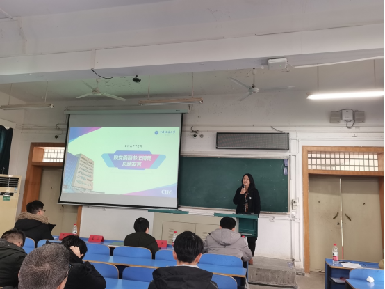 沈晨介绍年级管理和近期重点工作。他在进行简单的自我介绍后,从学院的日常管理、考风考纪、假期安排及重要事项提醒、假期要求等方面,提醒学生严格遵守学校各项规定,希望大家能够度过一个安全、充实、有意义的假期。