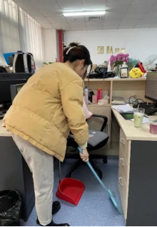 同学们高度重视积极参与,纷纷“脱下袄子、撸起袖子”,精神饱满、干劲十足地投身到大扫除中。扫地、拖地、整理、消毒,大家分工合作、相互配合,一丝不苟地清理卫生。宿舍、实验室到处都是同学们忙碌的身影。经过大家的共同努力,宿舍窗明几净,实验室一尘不染,公共区域更是焕然一新。