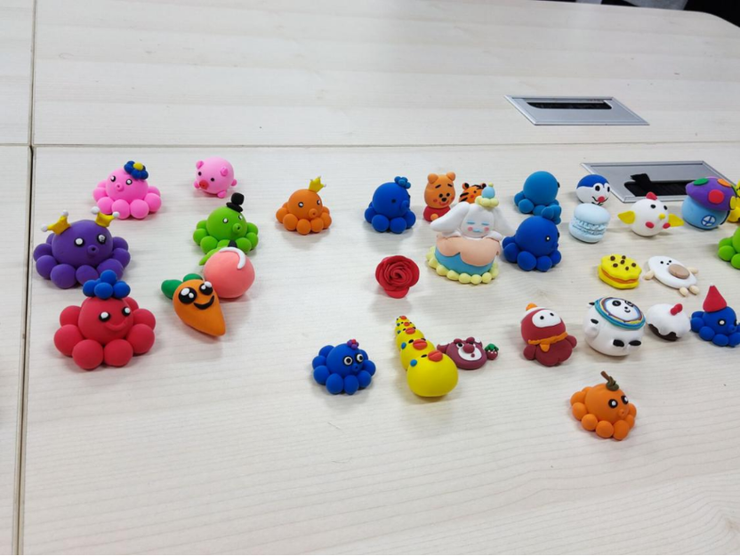 同学们在解锁了粘土创作的新技能后,纷纷开动脑筋、奇思妙想,开启了粘土DIY的快乐时光。