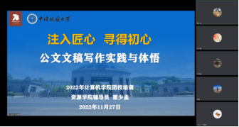 第一节课《注入匠心,寻得初心——公文文稿写作实践与体悟》由资源学院辅导员霍少孟老师讲授。霍少孟从自身学生工作经历引入,强调人生最重要的两种能力就是语言和写作即思维与逻辑。他认为写作是一种思想的表达形式,并用多种示例说明不同场合写作方法、格式、逻辑的灵活运用,随后介绍好的文稿“五要素”以及写作“五部曲”。在课程最后,他寄语同学们要提高认识、坚持学习,唯有勤学苦练才能造就高水平文章。
