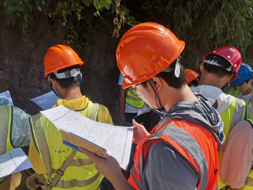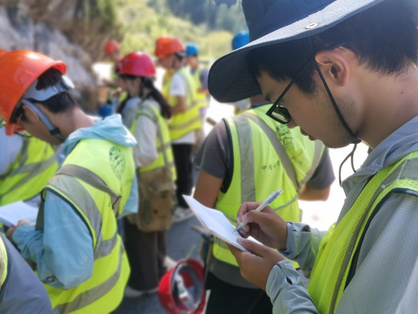 同学们携手观测,以放大镜观察岩石中的秘密,以罗盘测量地层的产状,同学们组内分工明确,搬运工具、收集标本、拍摄照片,整理野簿一个不落,组外守望相助,共同完成一个个观测点的记录。
