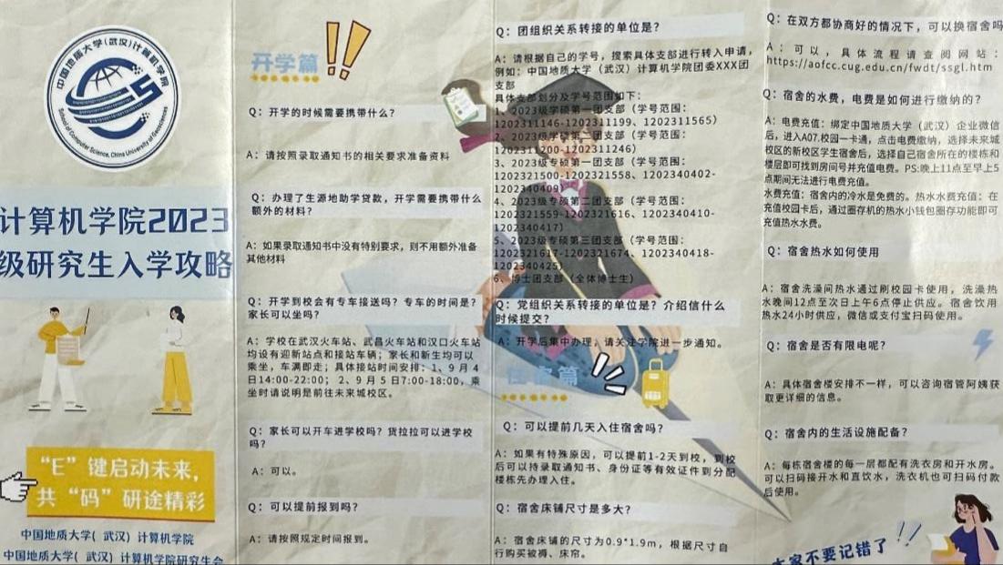“E”键启动未来,共“码”研途精彩。为了帮助新生报到畅通无忧,学院精心制作了“第一版主小说网 2023级研究生入学攻略”,攻略分为开学篇、学习篇、生活篇三部分,帮助同学们全方位了解开学时需携带的相关材料、课程培养、团组织关系转接等事项,同时一一解答关于体育馆预约、宿舍水费电费缴纳、热水使用、宿舍管理等问题,帮助新生尽快熟悉校园环境。