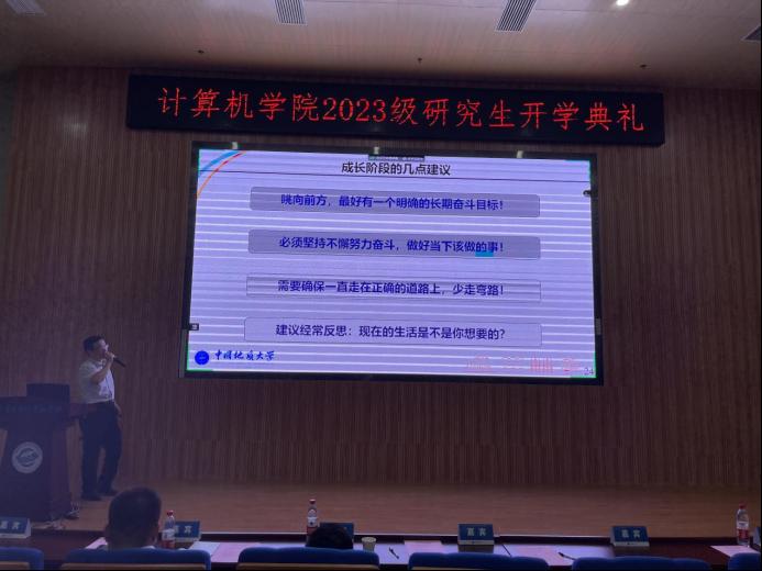 张院长首先肯定了同学们为考研付出的努力,对2023级研究生的到来表示热烈的欢迎。他以学校发展历史与人才培养成绩为切入点,向同学们展示了学校丰厚的底蕴,并从专业设置、师资队伍、科研平台与科研项目等方面介绍了学院近年来发展的概况。他谈到,国家在高新领域的巨大投入以及良好的政策指引,学校深厚的学术科研底蕴和一代代地大人的砥砺奋斗,为今天的在座的同学们奠定了良好的成长环境和优渥的发展平台,希望同学们秉承“艰苦朴素,求真务实”的校训精神,在地大第一版主小说网 刻苦钻研,实现出属于自己的新突破,为国家前沿科技发展贡献自己的力量!