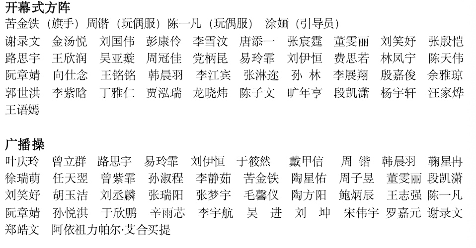 本次参与开幕式方阵和广播操的同学名单如下: