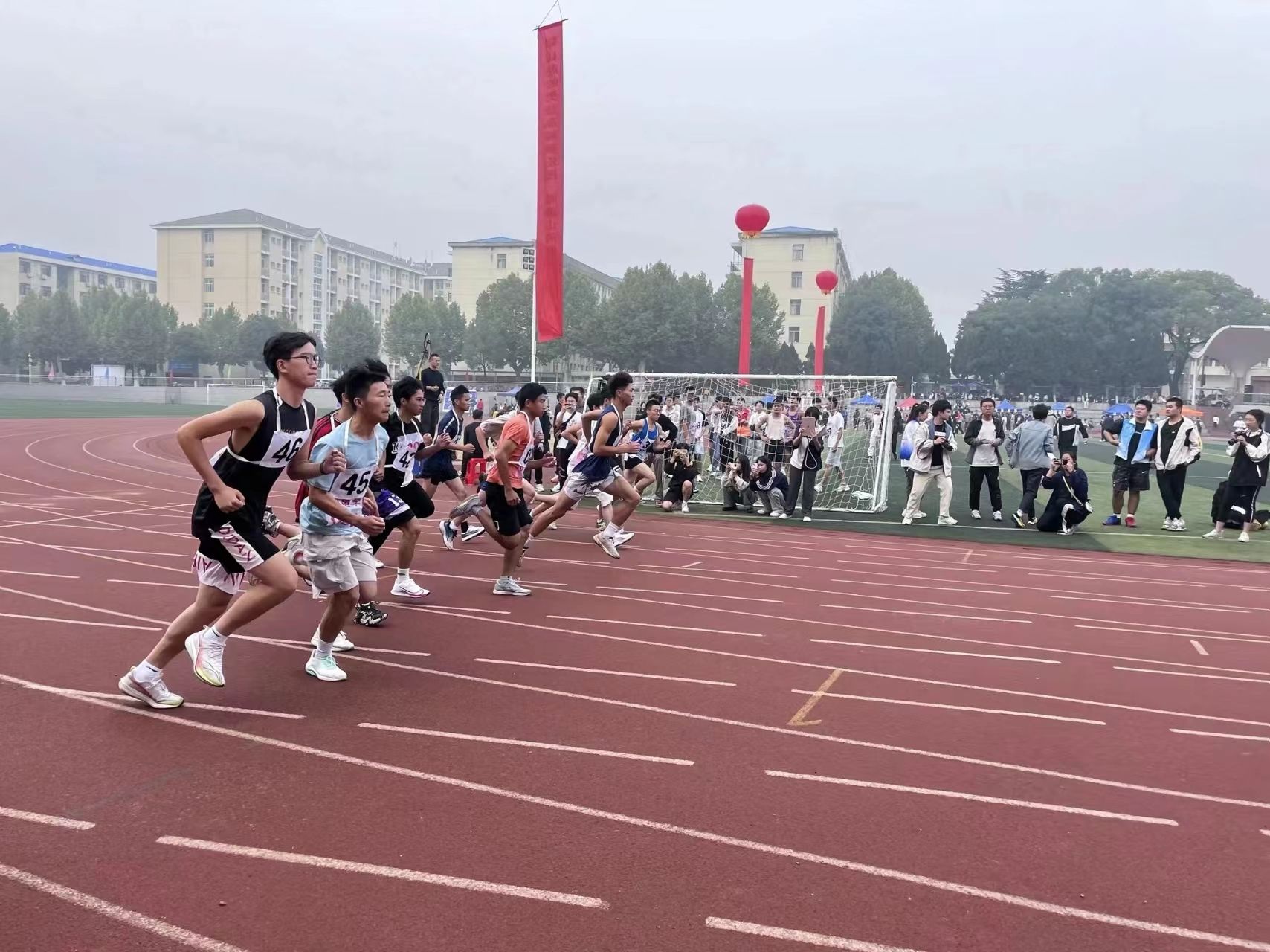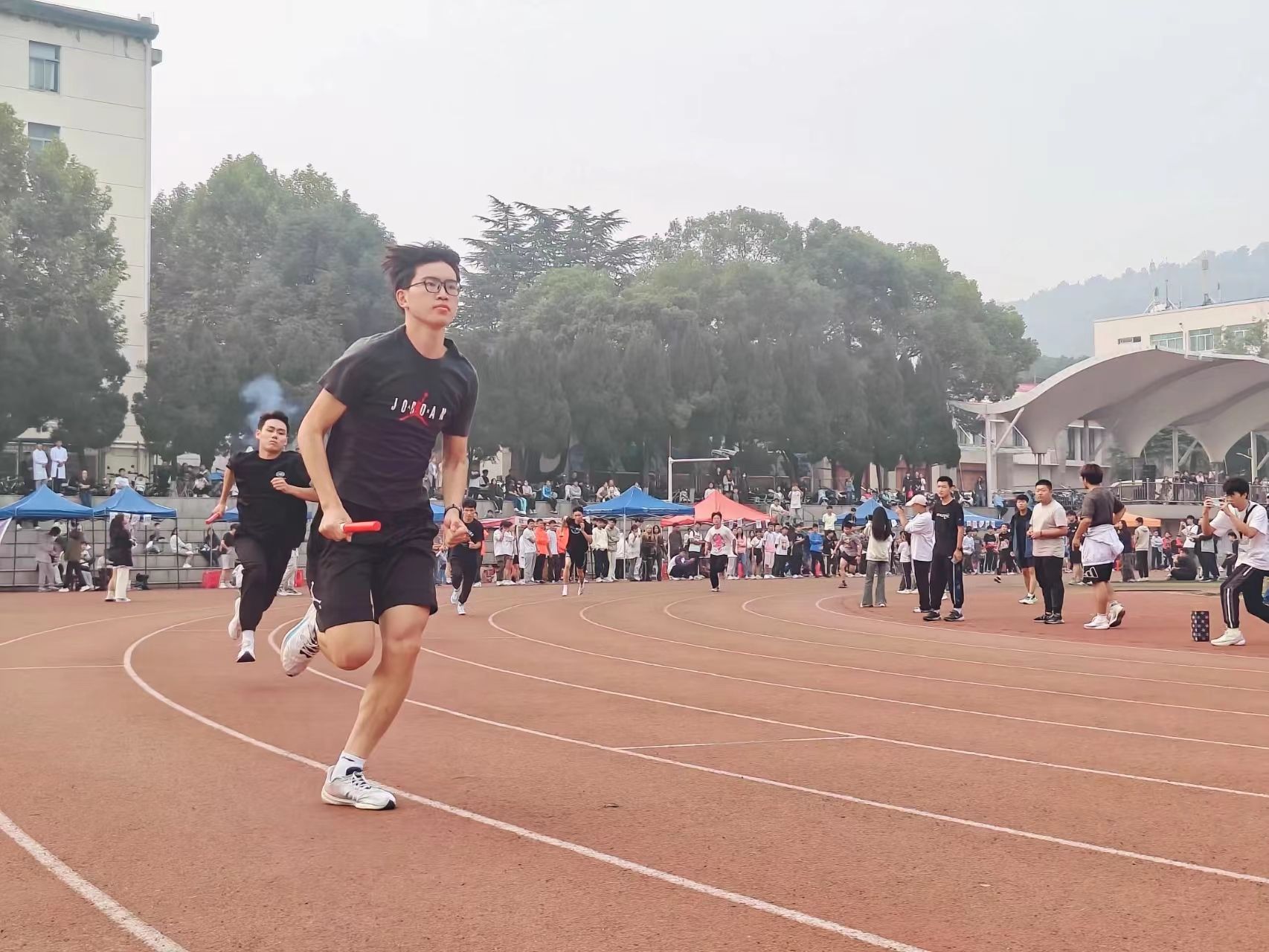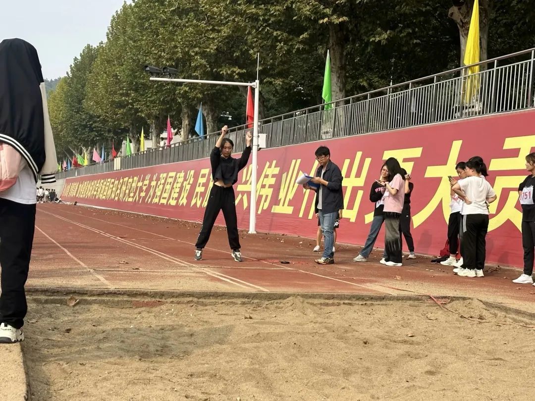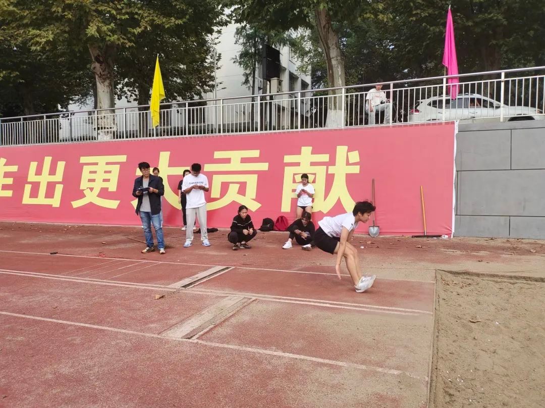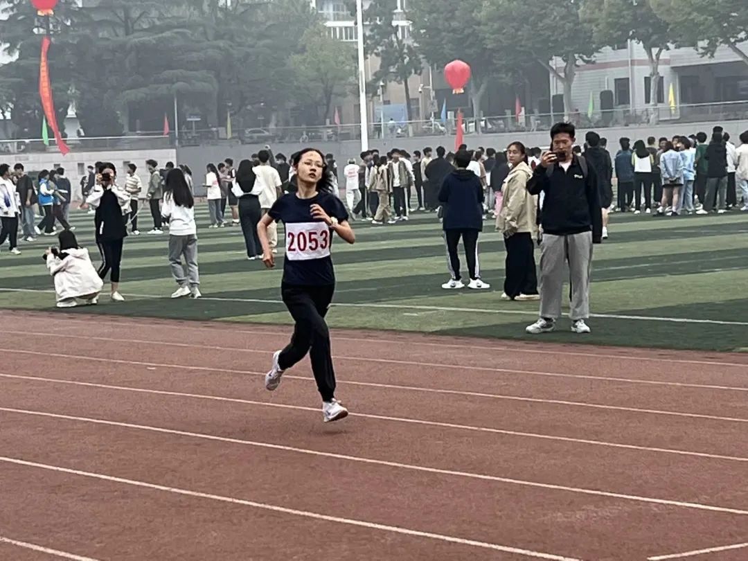 赤红的跑道上,是那一个个破风的身影。他们的眼前是冲刺的终点线,尽管汗水模糊了视线,仍旧奋力冲刺。耳畔是同学们的加油助威,脚下是愈加坚定的步伐。其中,男子组石亮同学斩获400米第二名、800米第三名,女子组李紫晗也获得了400米第四名的好成绩。
