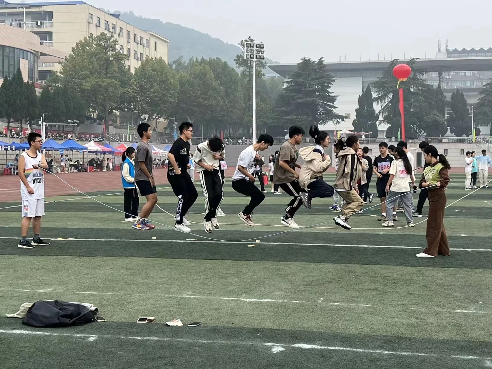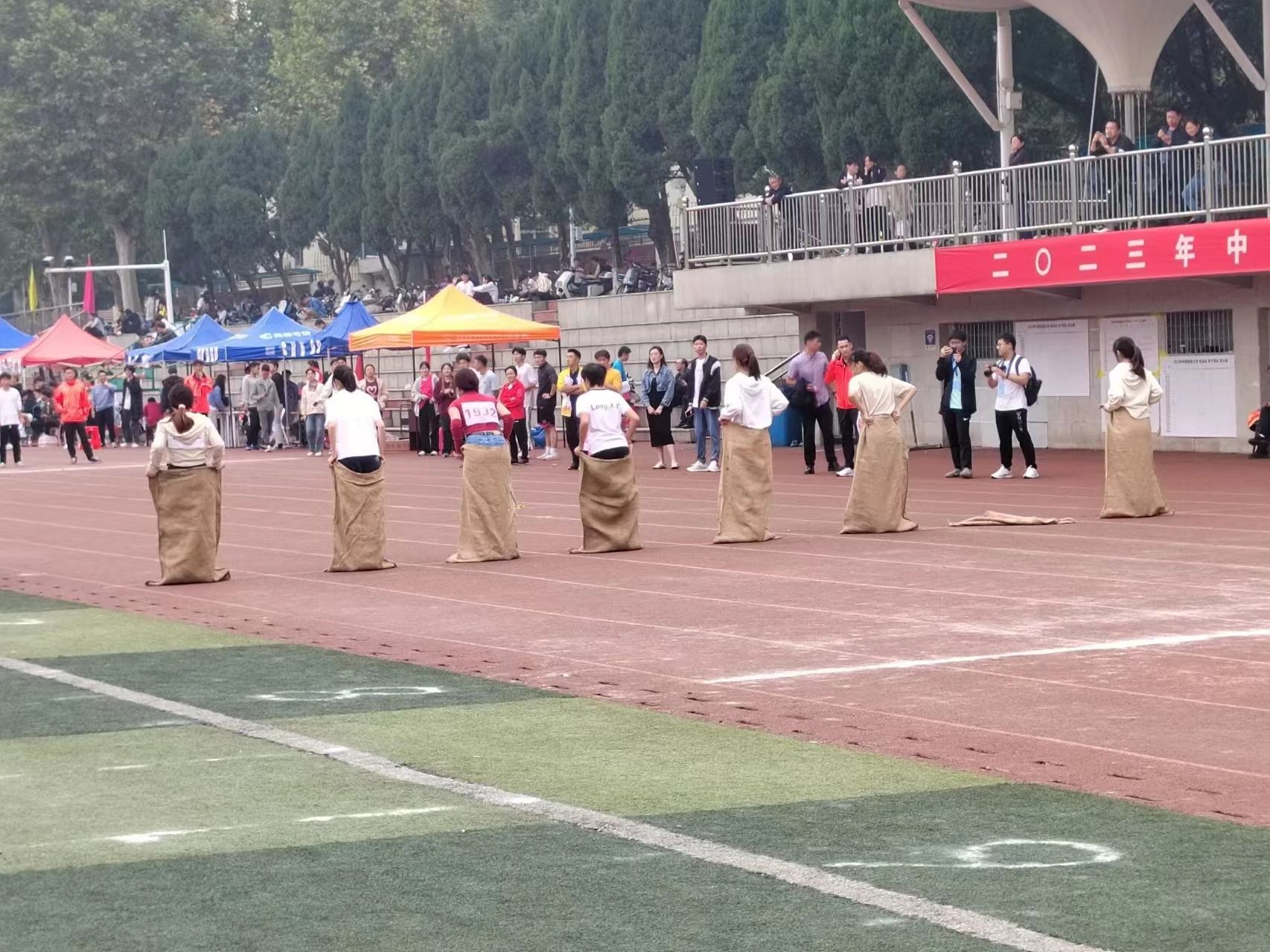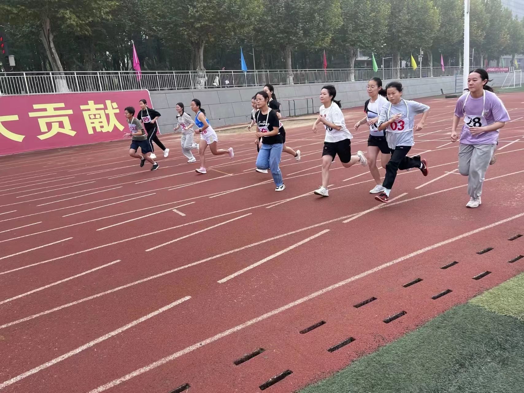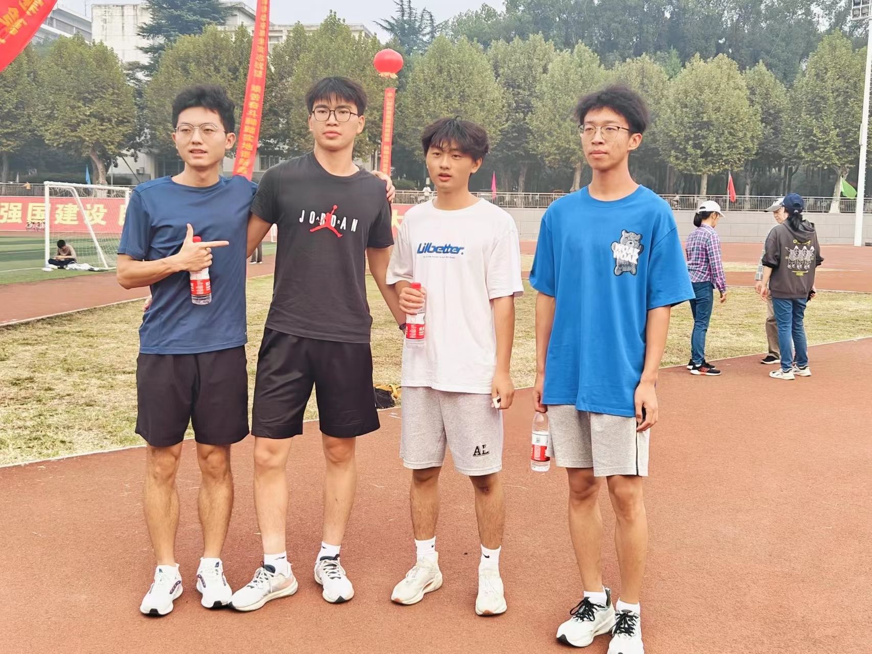赤红的跑道上,是那一个个破风的身影。他们的眼前是冲刺的终点线,尽管汗水模糊了视线,仍旧奋力冲刺。耳畔是同学们的加油助威,脚下是愈加坚定的步伐。其中,男子组石亮同学斩获400米第二名、800米第三名,女子组李紫晗也获得了400米第四名的好成绩。