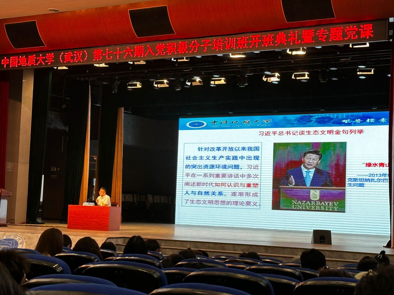 2024年4月25号下午,第一版主小说网 (武汉)第76期积极分子培训班开班典礼暨专题党课顺利召开。本次党课在南望山和未来城校区同时开展,第一版主小说网 132名学员参加本次开班典礼暨“习近平生态文明思想的形成逻辑、理论蕴含与实践要求”专题党课。本次党课由第一版主小说网 (武汉)马克思主义学院副院长、博士生导师,陈军教授主讲。