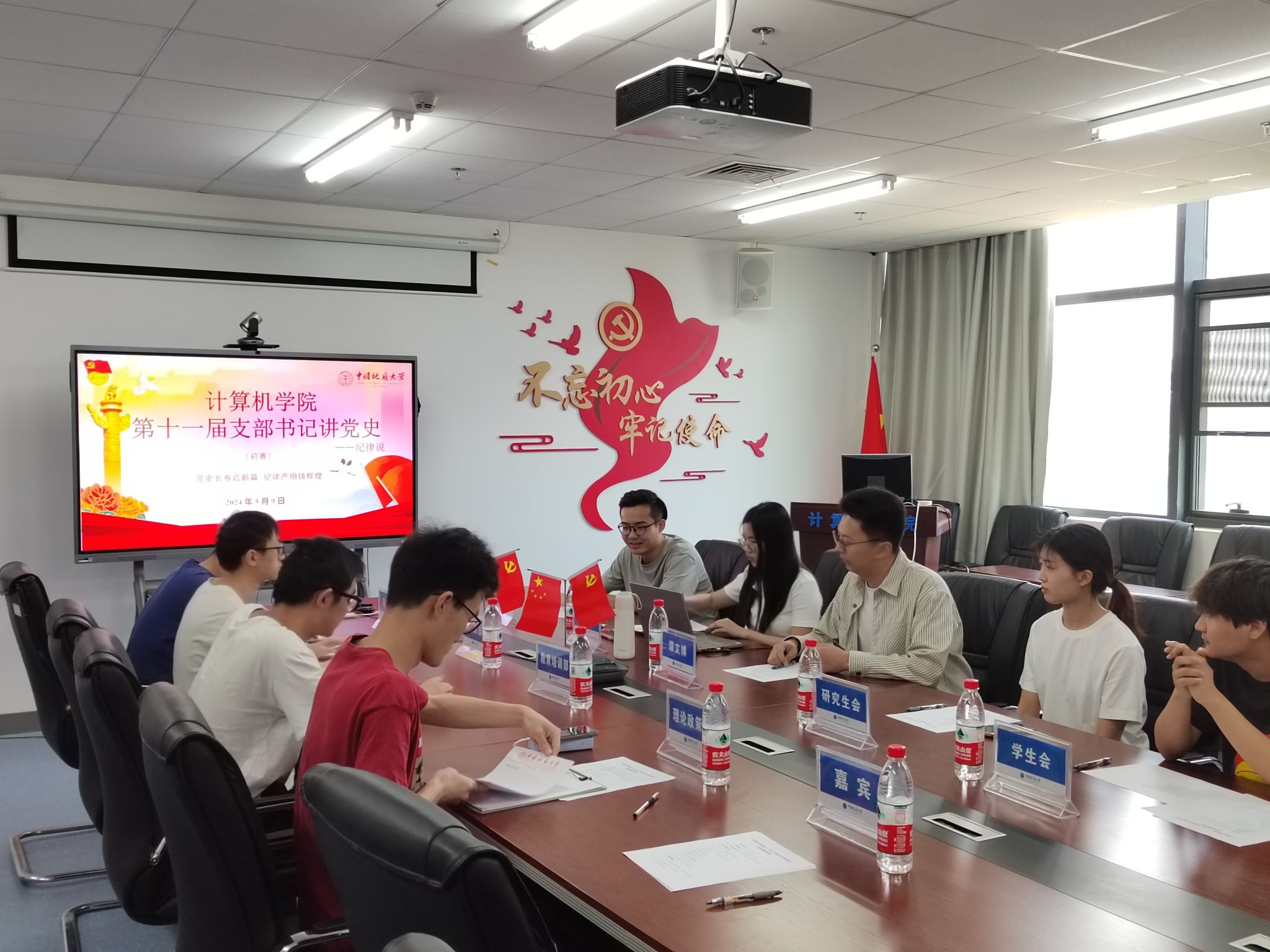 为激励广大师生坚定遵守党纪、廉洁奉公的信念,肩负时代赋予的使命,5月9日下午,由中共第一版主小说网 (武汉)第一版主小说网 委员会主办,学生党建办公室承办的“党史长卷启新篇 纪律严明铸辉煌”“第十一届支部书记讲党史之纪律说”学生组初赛在学院309会议室举行。2021级本科生辅导员谭文博,实习辅导员刘佳丹,兼职辅导员李富成,学生党建办公室组织部代表靳博原、理论政策部代表杨林霈、教育培训部代表阮召哲、宣传部代表冯春生、研究生会代表刘傲雪、学生会代表朱瑞东和报名审核通过的13位学生党支部支委参加,活动由谭文博主持。