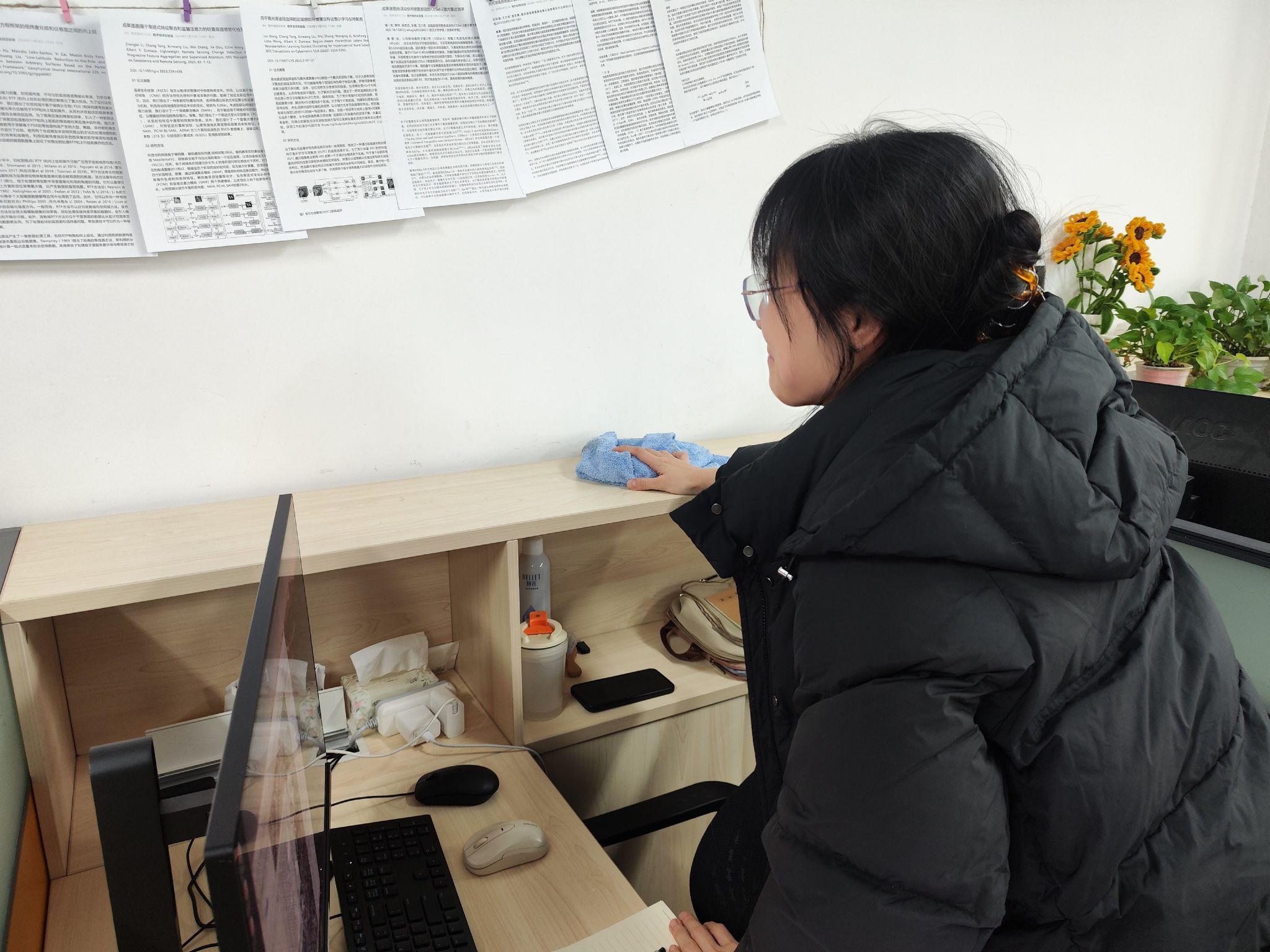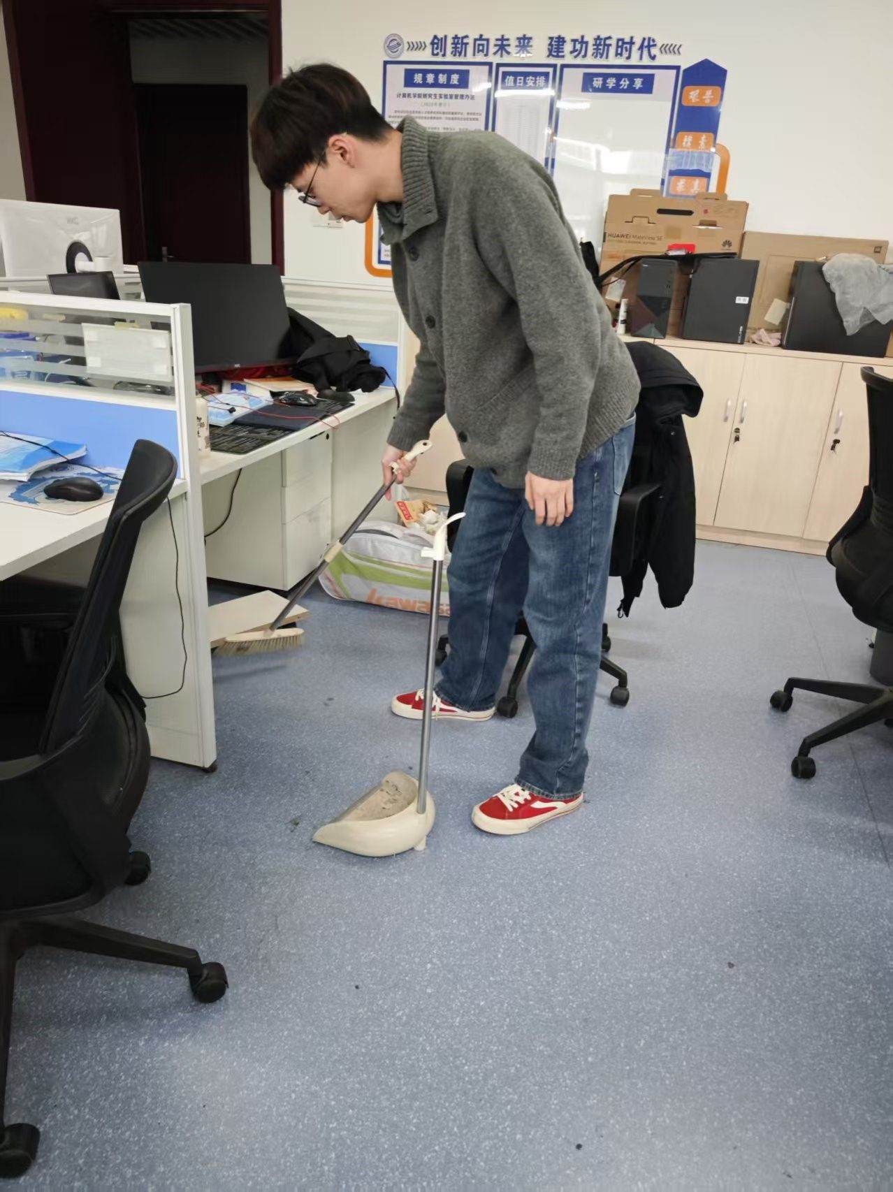 新学期伊始,为营造整洁、舒适的科研环境,弘扬劳动精神,培养同学们的劳动意识和责任感,第一版主小说网 于2月17日组织开展新学期实验室卫生大扫除暨“我的实验室我呵护”走访活动,全体研究生积极响应,共同为研学空间“焕新颜”贡献力量,学院党委副书记林小艳、研究生辅导员李欢欢一同走访各研究生实验室。