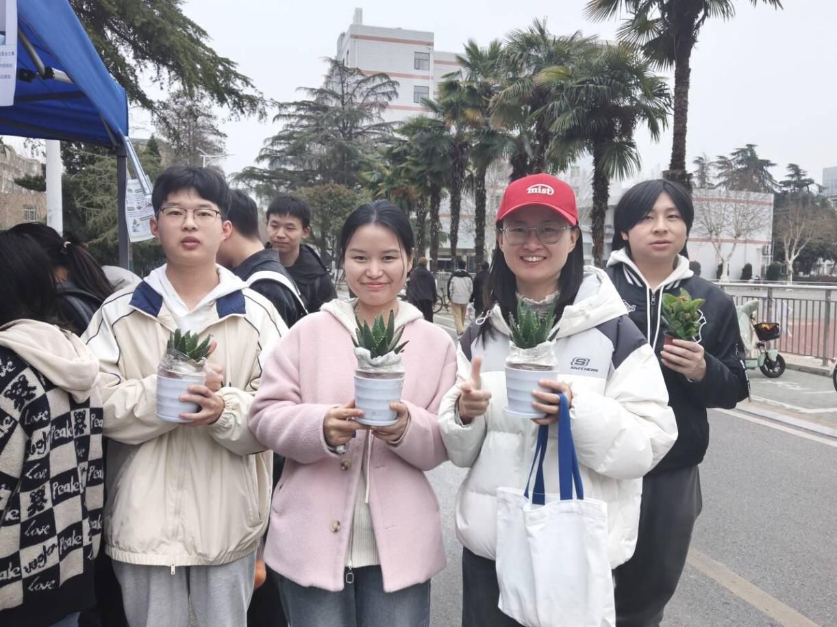 师生们积极参与趣味答题活动,现场气氛热烈。题目涵盖植物的种类、生长习性、生态价值等多个方面,既有简单的科普问题,也有专业知识的探讨,大家通过知识竞答,领取自己心仪的绿植,一株株翠绿欲滴,生机勃勃的绿植瞬间成为同学们的“新宠”。同学们手持绿植开心合影,定格收获的喜悦。