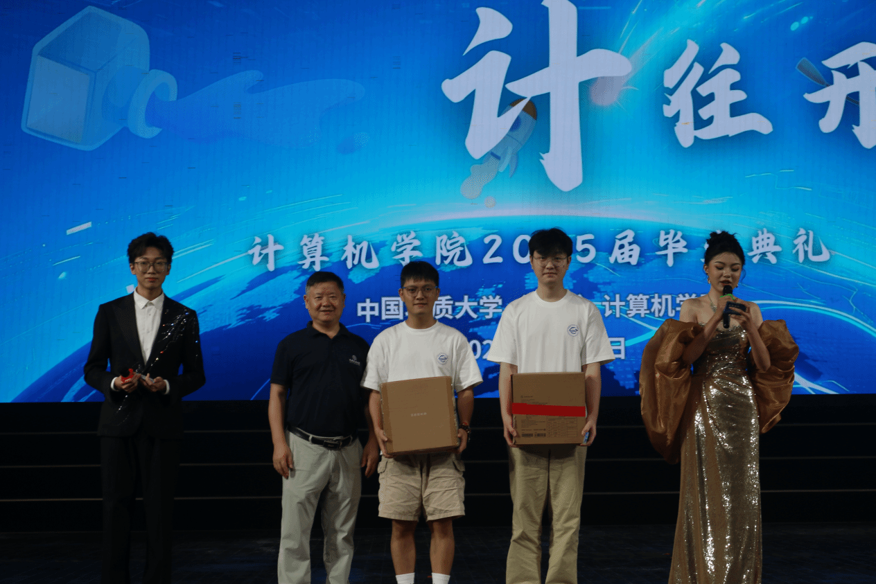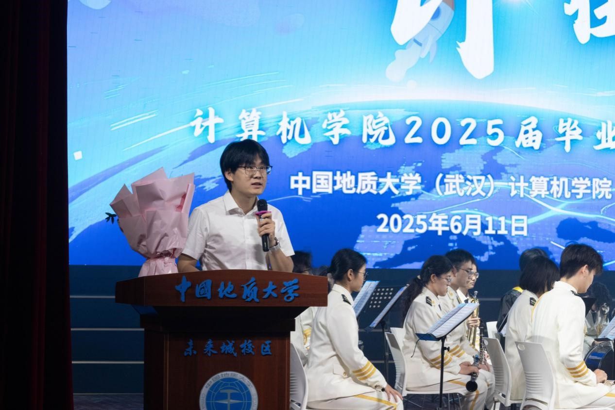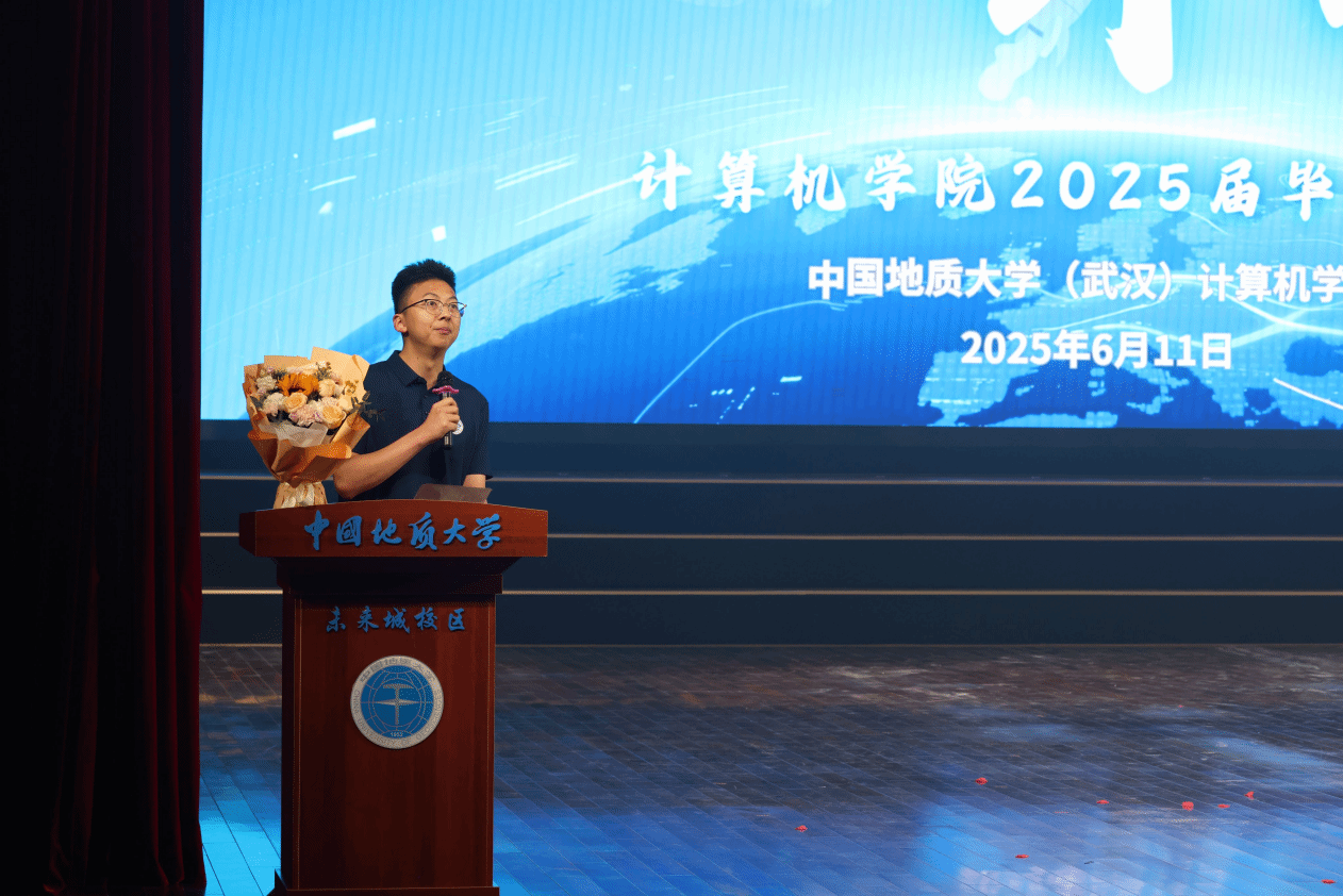 学院副院长刘刚宣读优秀班级与优秀毕业生。优秀毕业研究生代表邢斯豪和本科生代表郭鹏顺分别发表获奖感悟。