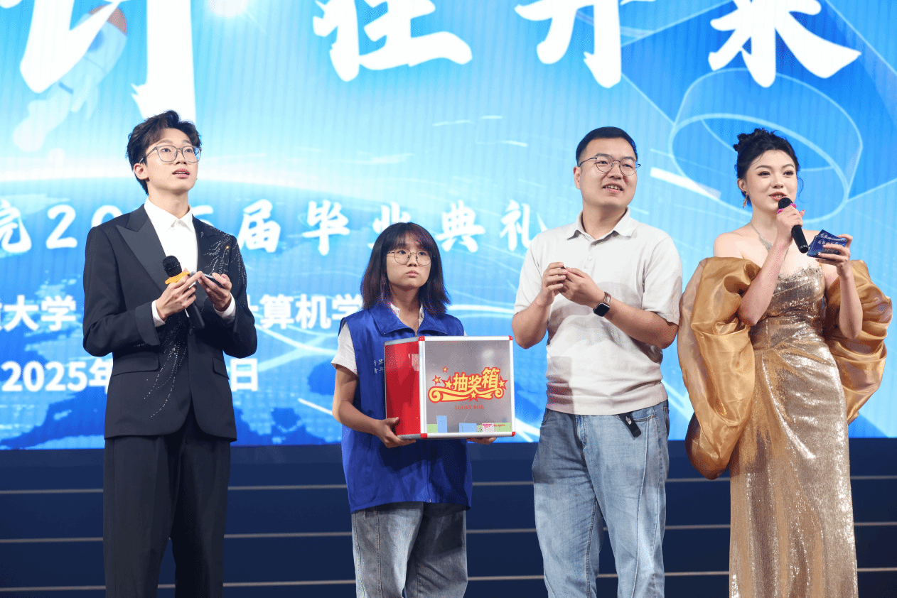 匡磊同学演唱的《山丘》唱尽了对成长上的感悟,刘陈同学的舞蹈《SHERLOCK&LUCIFER》展现了青春的活力与热情。丁鑫磊、谭文博老师和吴昊、郭文宇同学合唱的《下一个天亮》以及谭文博老师作为辅导员代表的发言,都充满了对毕业生的祝福与不舍,鼓励大家不忘初心,保持健康与爱。特邀嘉宾2021级兼职辅导员沈晨抽取二等奖。