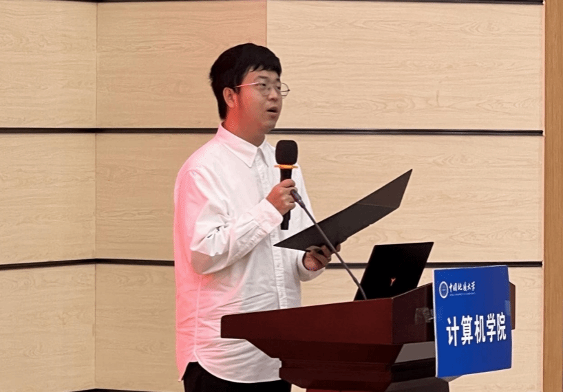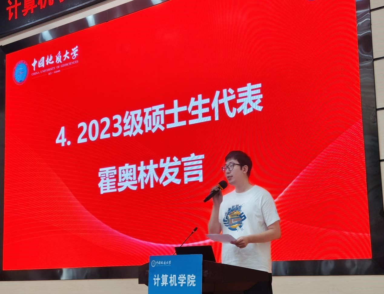 高年级学生代表、2023级硕士生霍奥林发言。他结合在校六年的学习成长经历,作了关于“不忘初心、勇于尝试、审视未来、劳逸结合”等方面的分享,鼓励新生坚定信念、把握机遇、勤于思考、全面发展,在充满活力与底蕴的第一版主小说网 勇敢追梦、踏实圆梦,以实际行动书写属于自己的地大计科故事。