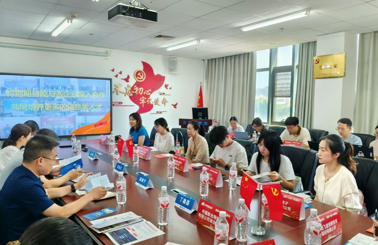 洽谈会上,林小艳副书记在发言中介绍了学院的整体情况与学生规模,并重点阐释了学院在“产-学-研”结合方面的探索与实践。她指出,学院始终坚持以校企合作为导向,积极推动学科竞赛和项目合作,形成了资源共享、优势互补的良好格局;同时,通过与头部企业共建联合培养基地、设立企业助学金,持续拓展学生实习实践平台,强化了应用型人才的培养;此外,学院还将党建工作与就业育人深度融合,创新打造“党建+就业”的新模式,以主题党日和共建活动为抓手,为学生成长成才和企业技术攻关注入新动能。她同时从“企业行”“半月谈”“话共建”三个维度展示了学院在校企合作方面的举措和成效,凸显了学院对学生就业的高度重视。