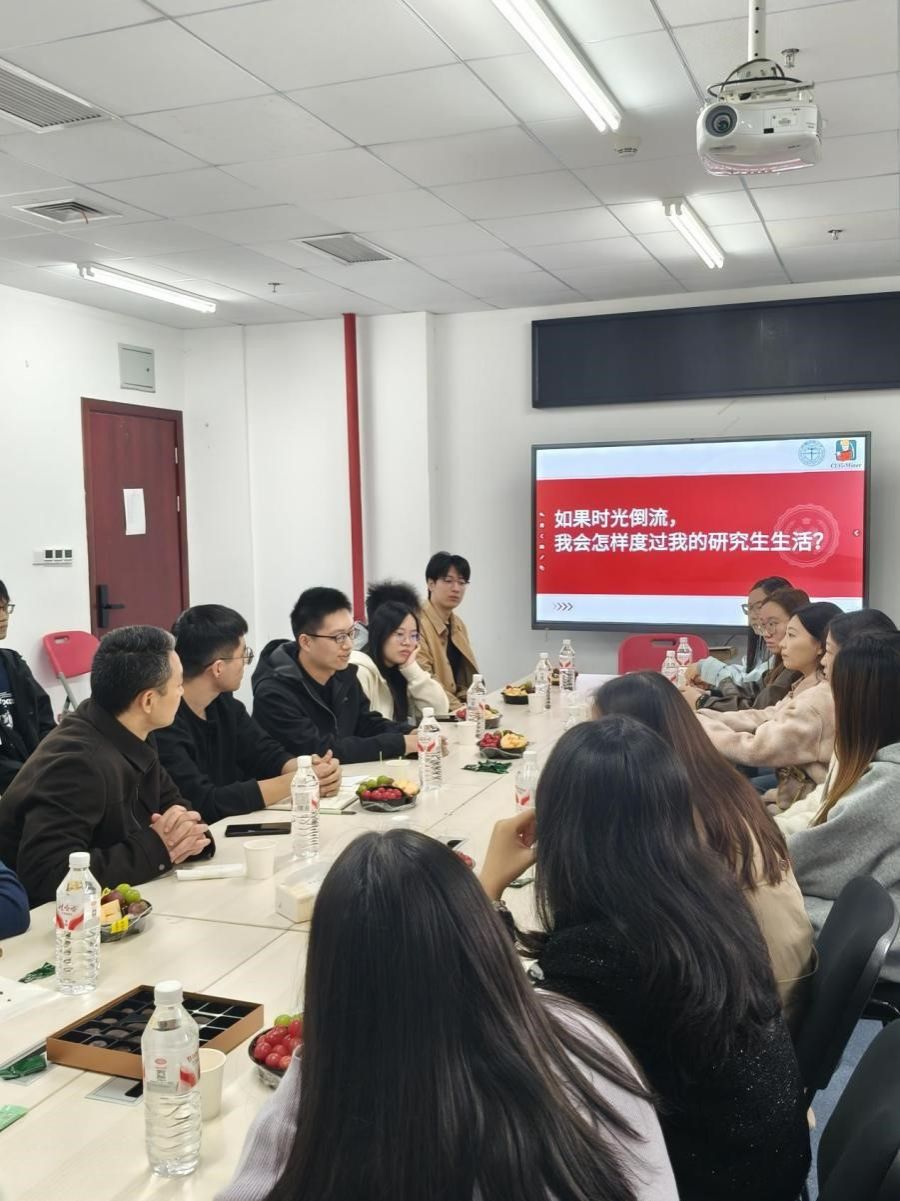 交流环节中,返校毕业生与在校研究生围绕学术科研方法、职业规划选择、生活压力调节等话题展开深入探讨。毕业生们毫无保留地分享自身经验,针对在校研究生提出的 “如何平衡科研与生活”,“就业方向如何选择” 等问题耐心解答;在校研究生则积极提问,现场互动频繁,干货满满。