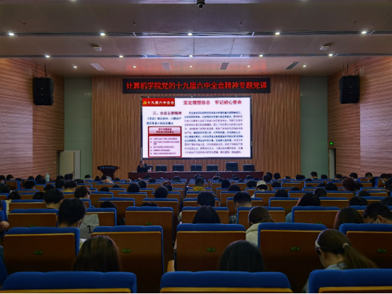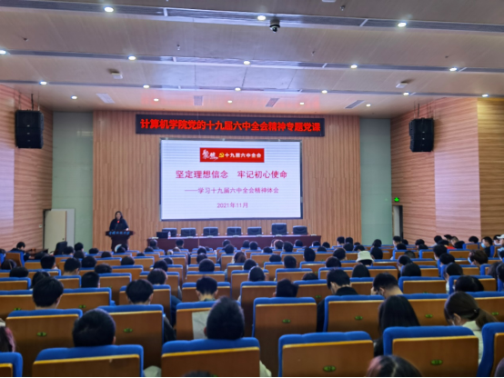 傅苑作总结。她表示成金华教授的讲课见解深刻、令人受益匪浅。学习过程中,在座师生深刻体会到十九届六中全会的历史重要性,边学习,边思考,边共鸣,边收获。她要求,全院师生要结合此次专题辅导报告,把学习宣传贯彻党的十九届六中全会精神作为当前和今后一个时期的重大政治任务,有效开展分类宣讲,融入班团会环节,迅速掀起学习宣传全会精神的高潮。她强调,所有入党积极份子要努力提高学习党史理论知识的能力,培植历史主动精神,以巨大的政治担当,主动肩负起历史重任,为建设社会主义现代化国家的伟大事业贡献自己的计科力量!