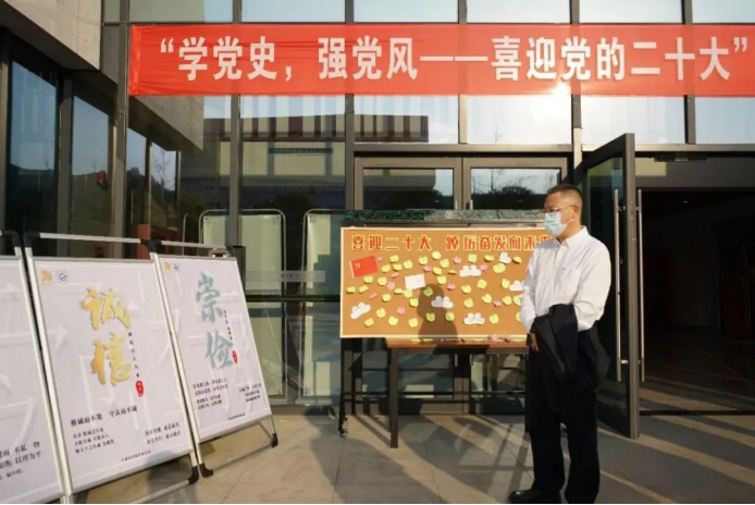 16日上午,学院策划制作的“党风廉政建设”宣传展板,中国共产党历次党代会重点内容学习海报以及“喜迎二十大,踔厉奋发向未来”祝福寄语墙在学院一楼展出,引发广大师生的驻足学习、热议。其中,历次党代会学习海报以色彩鲜明的图文形式,生动描绘了从党的一大到十九大的历史背景和意义,启发师生们切身感受“学党史,强党风”的深刻内涵。在“喜迎二十大,踔厉奋发向未来”祝福寄语墙上,师生们留下了“凝心聚力新时代,团结聚力新征程”、“时间砥砺前行,岁月见证初心”、“青春向党,不负众望”的美好祝福和铮铮誓言。