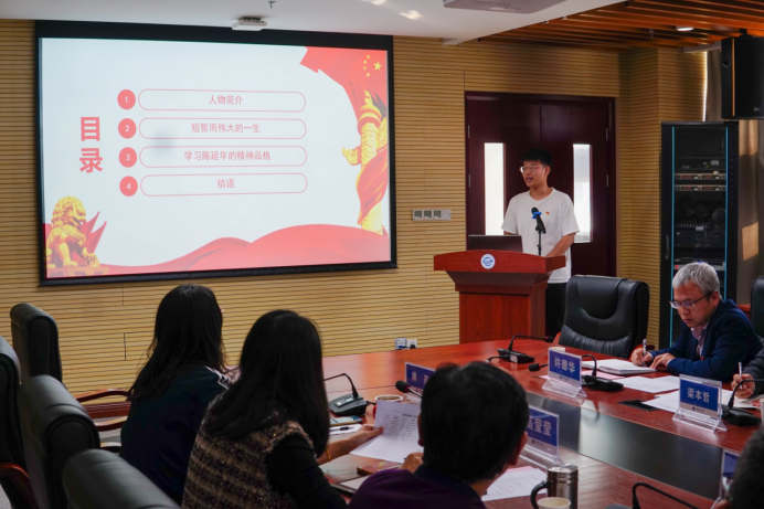 2021级研究生专硕第二党支部书记廖孟伟分享的主题是“视死如归的革命者——致敬陈延年同志”。